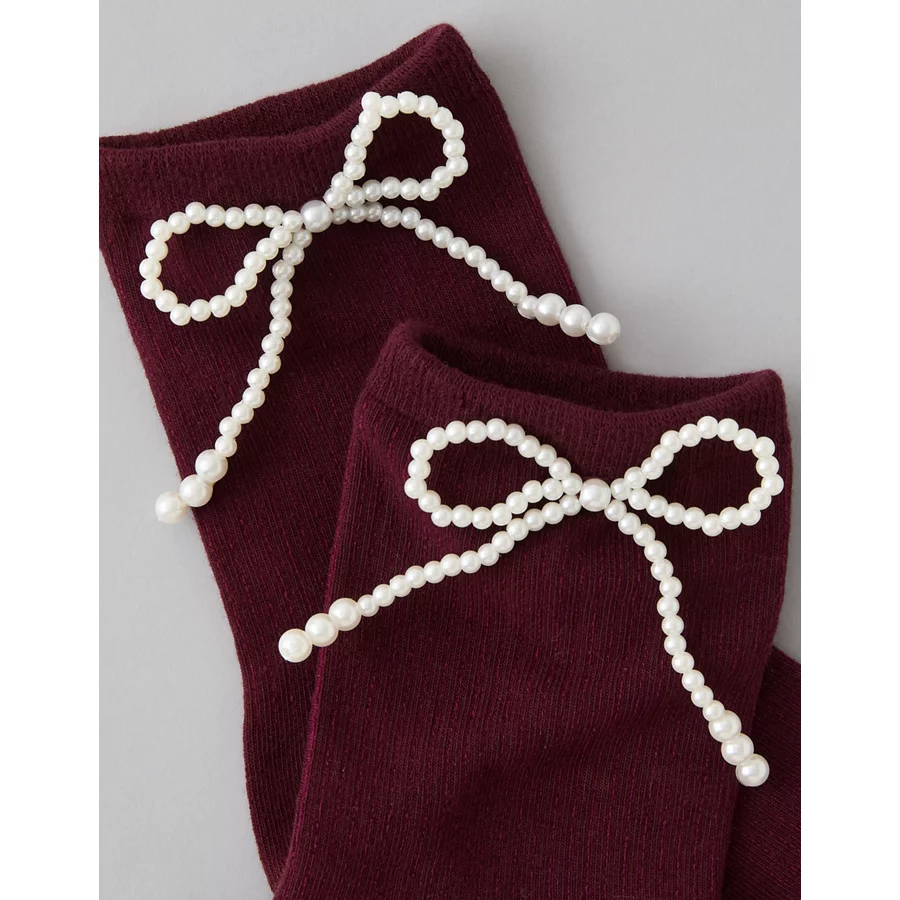 AE Pearl Bow Cropped Crew Socks – Preppy Red