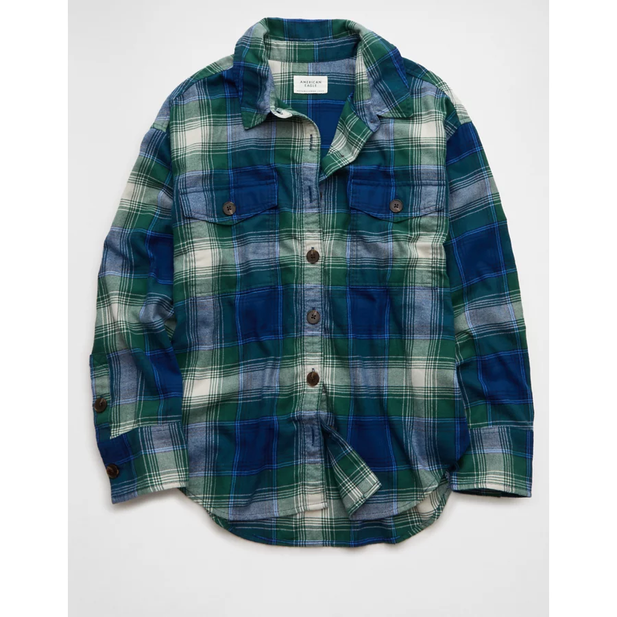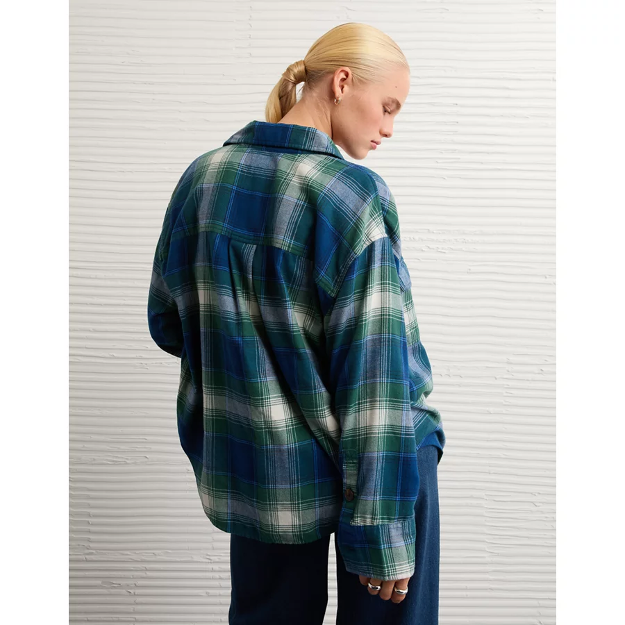 AE Plaid Button-Up Shirt – Deep Forest Green