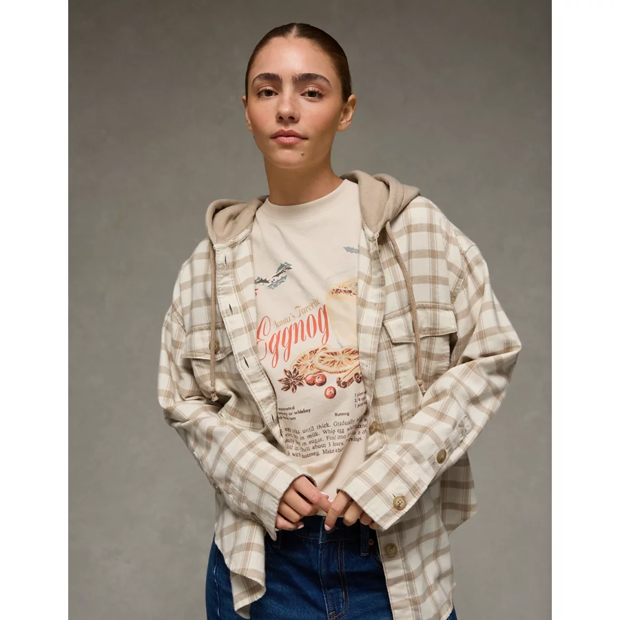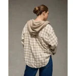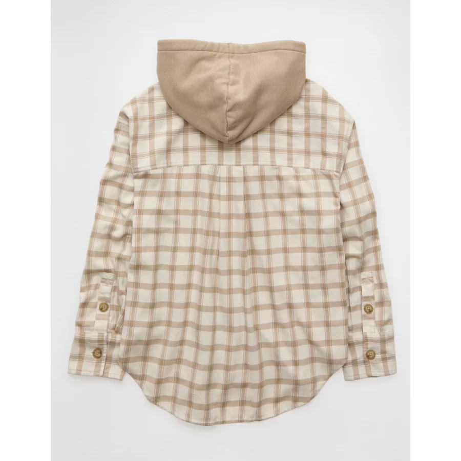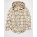 AE Plaid Hooded Button-Up Shirt – Cream