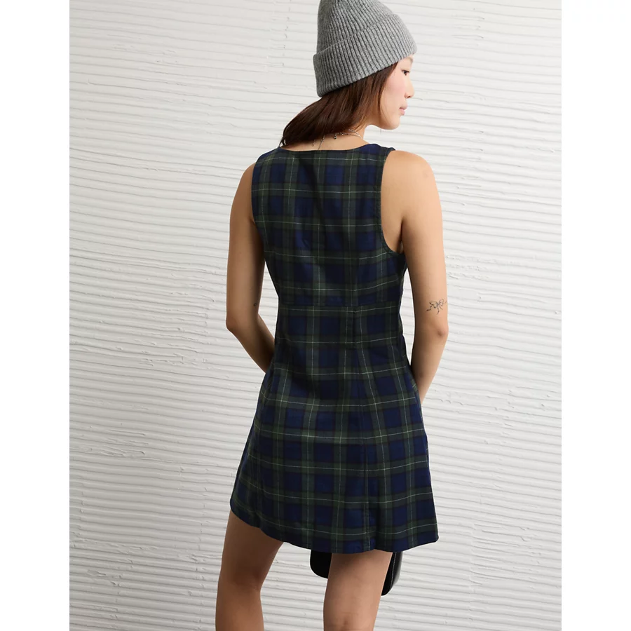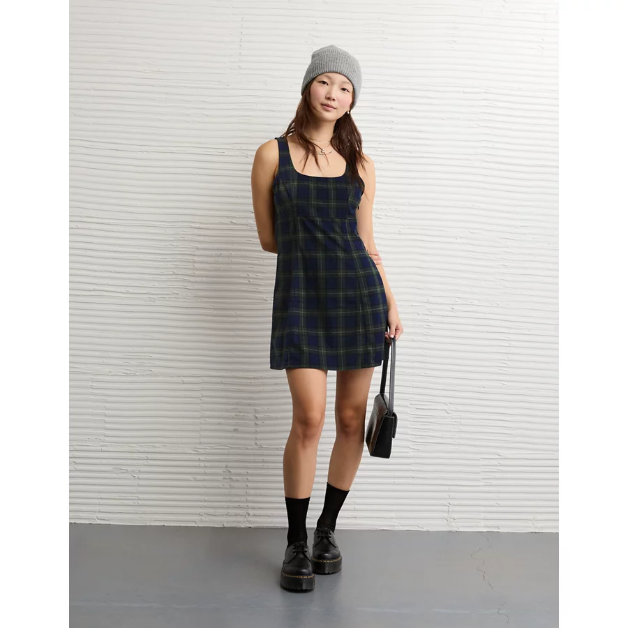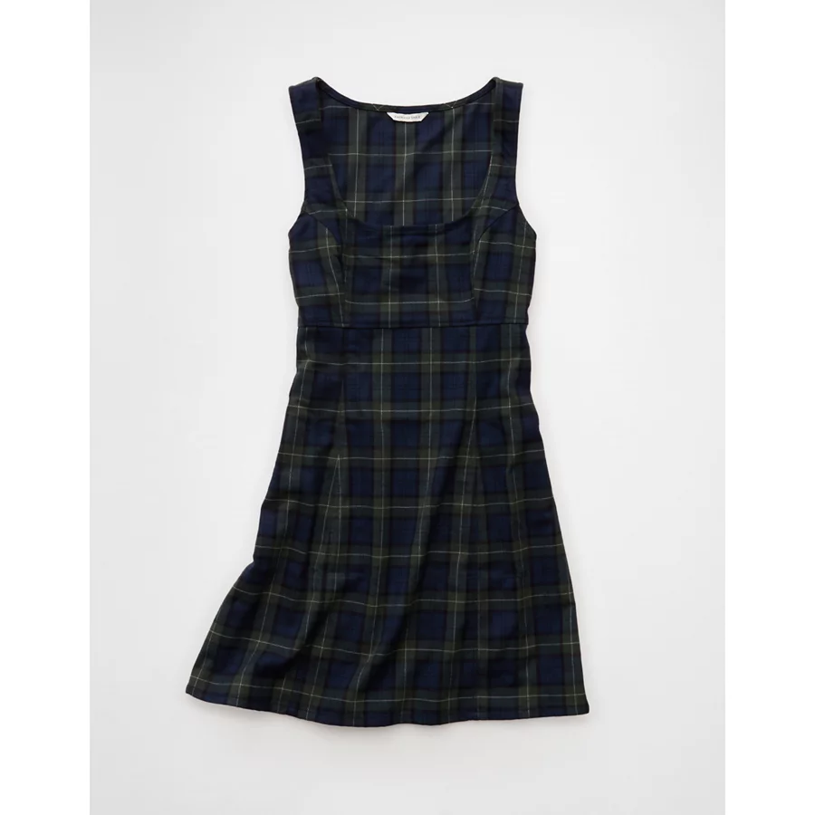 AE Plaid It Knit Mini Dress – Navy