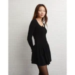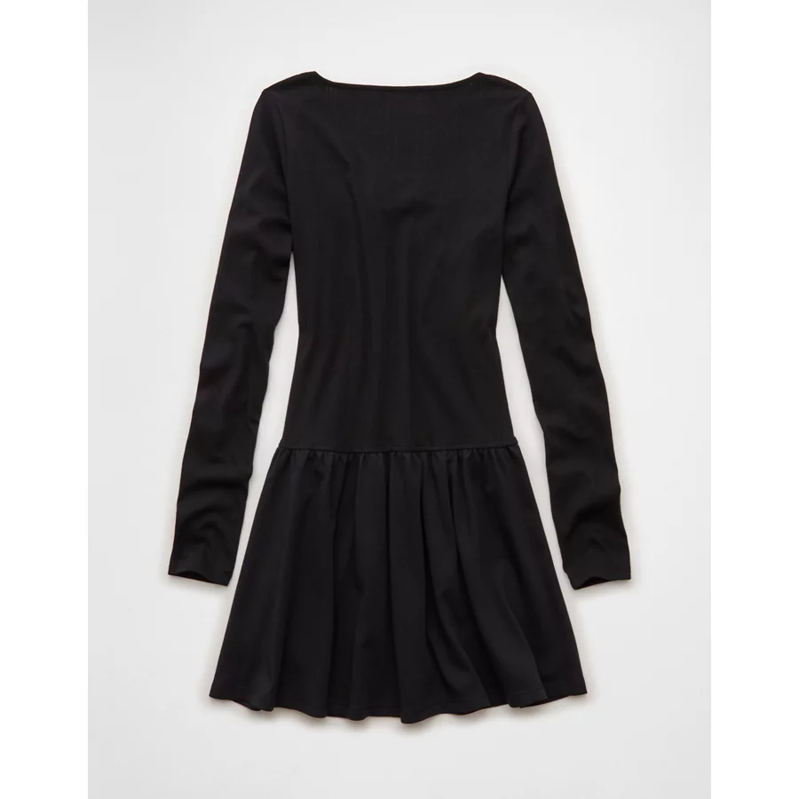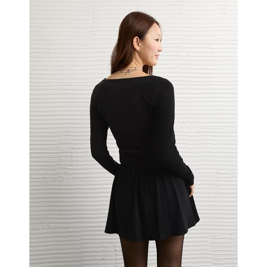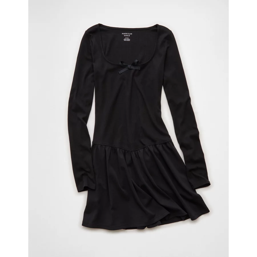 AE Pointelle Puff Sleeve Mini Dress – Black