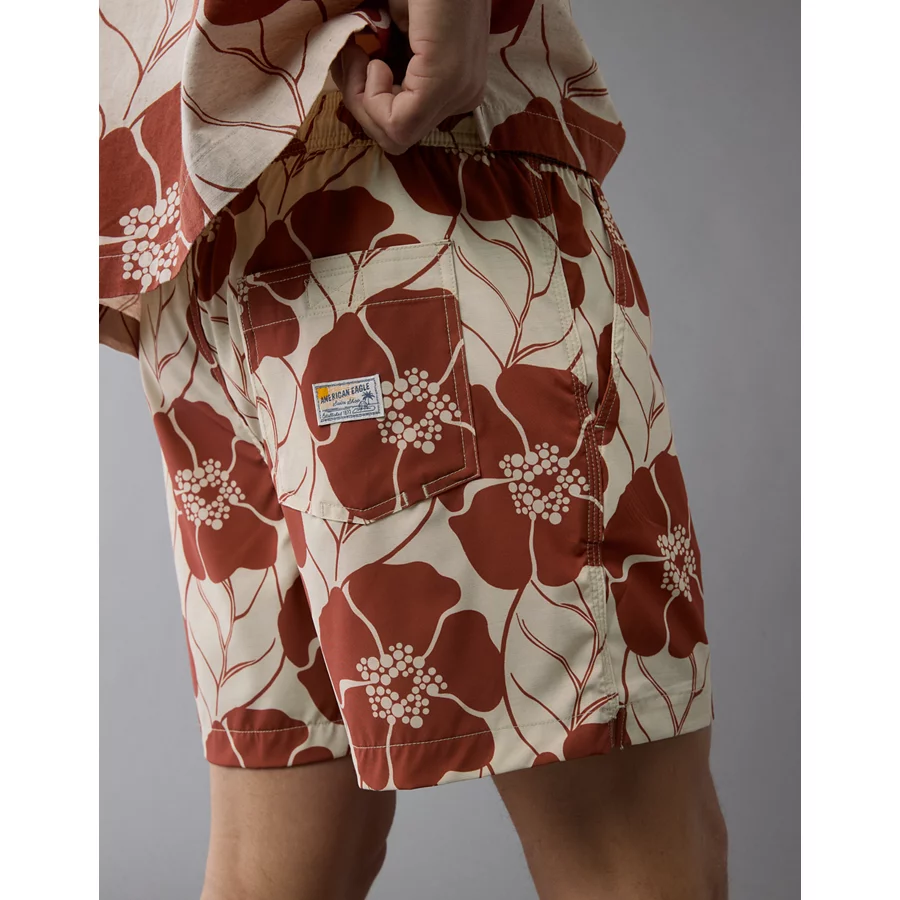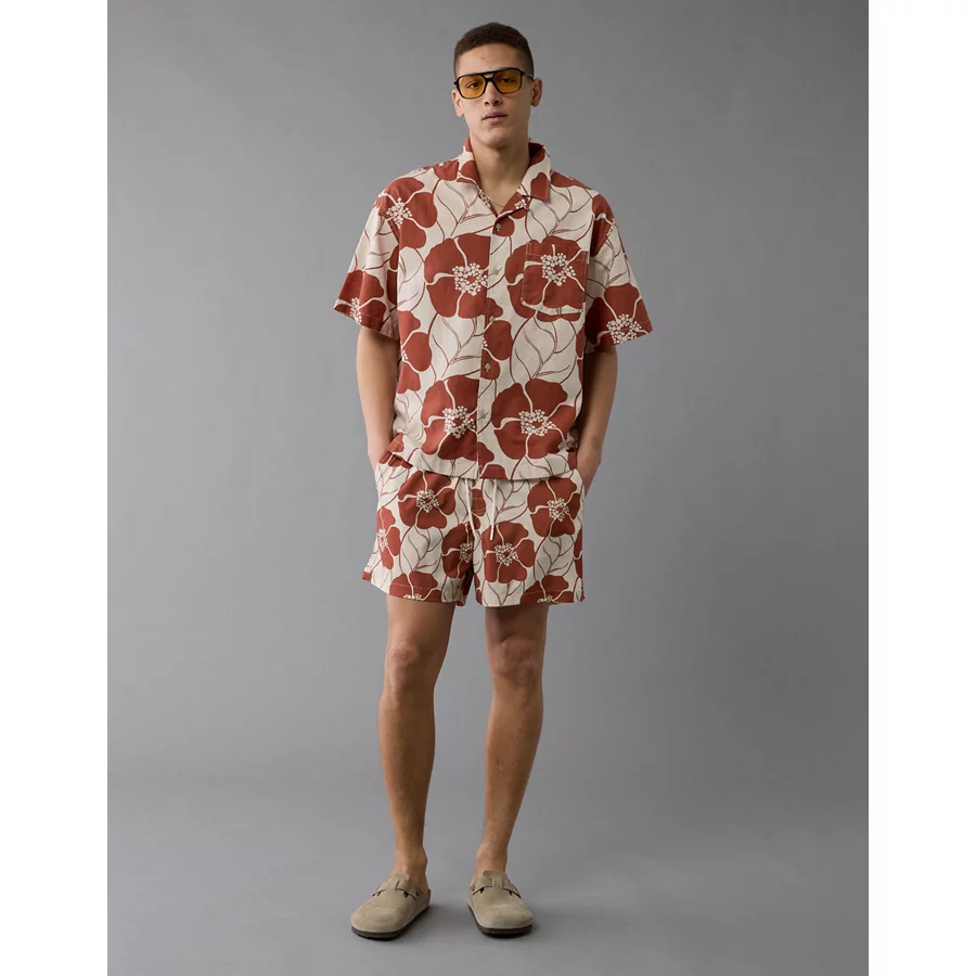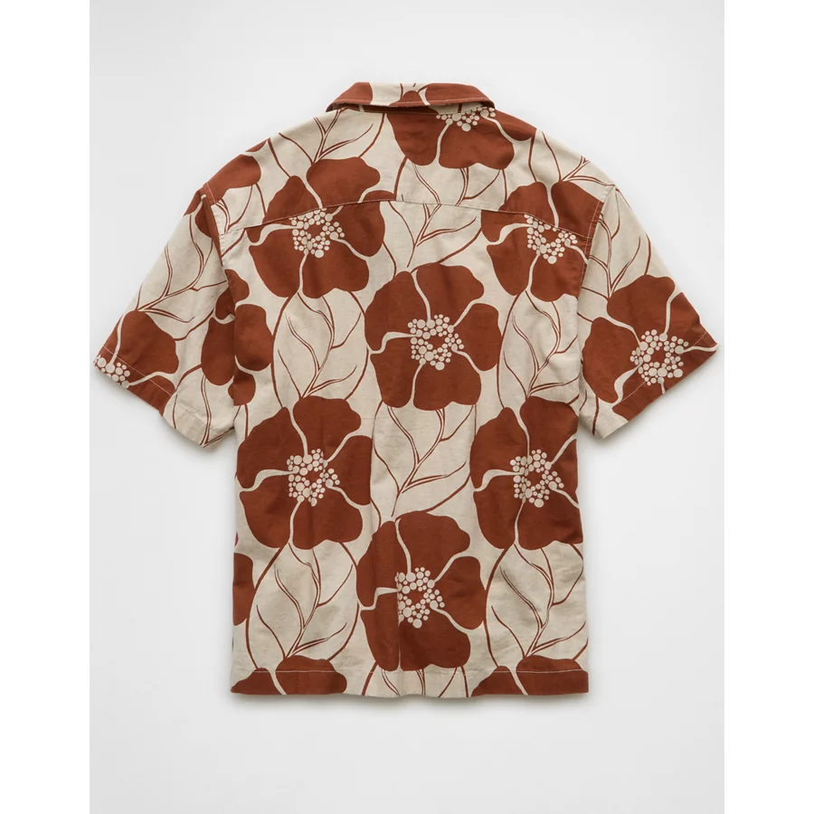 AE Poolside Linen-Blend Floral Button-Up Shirt - Cool White