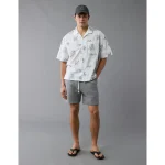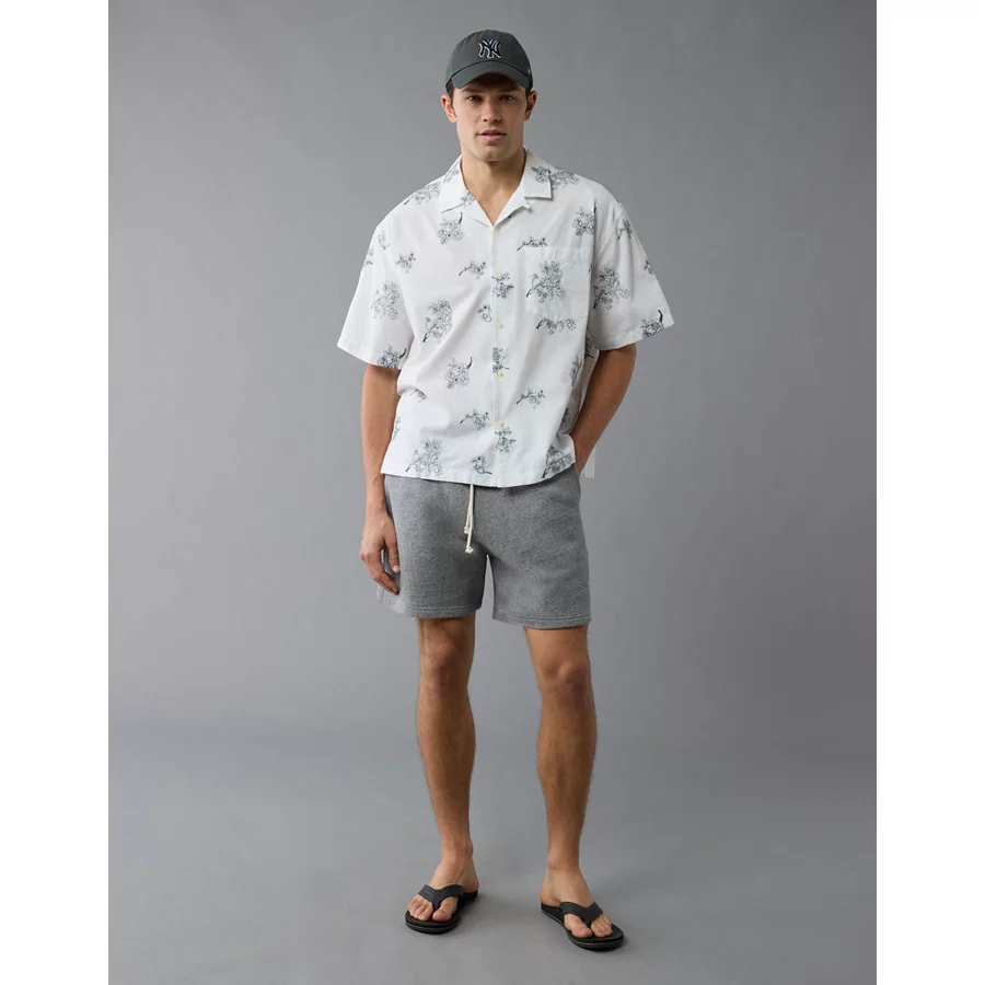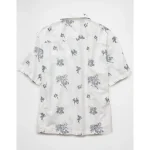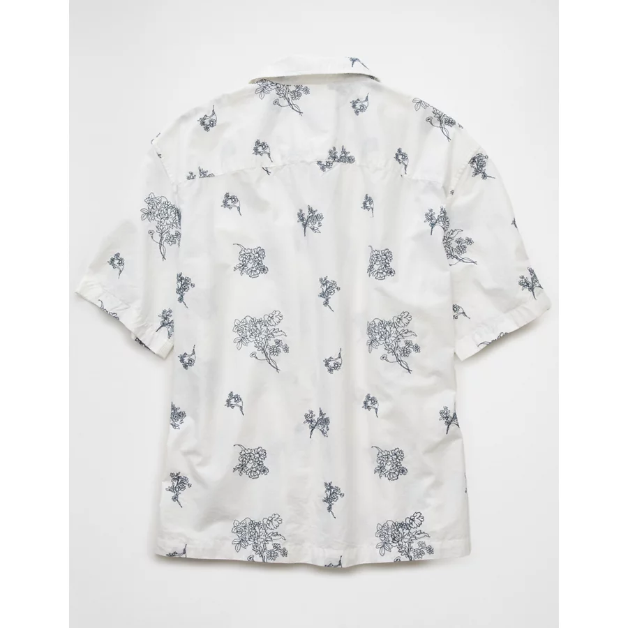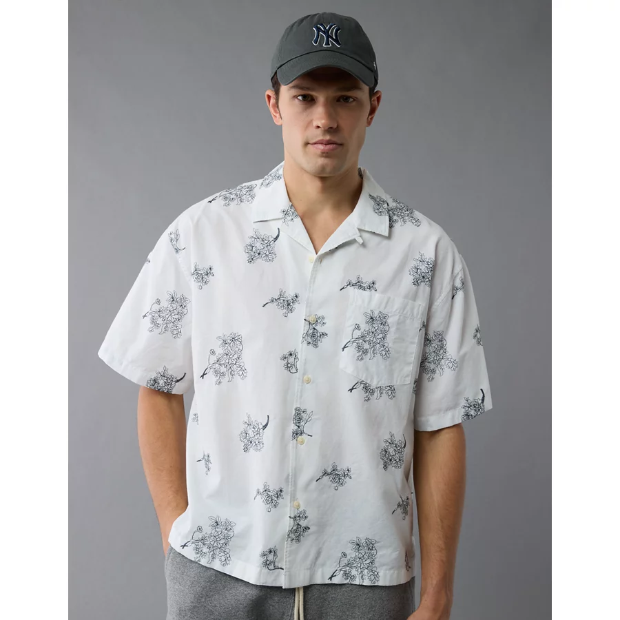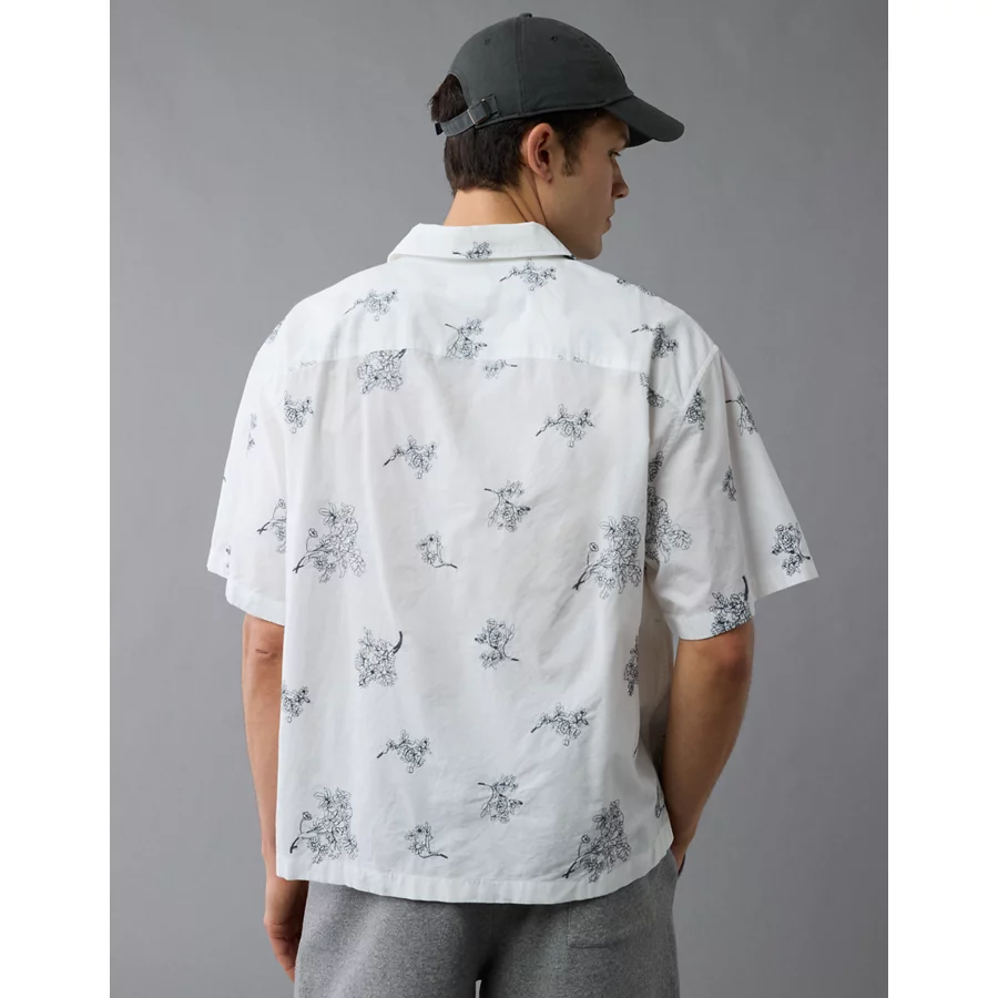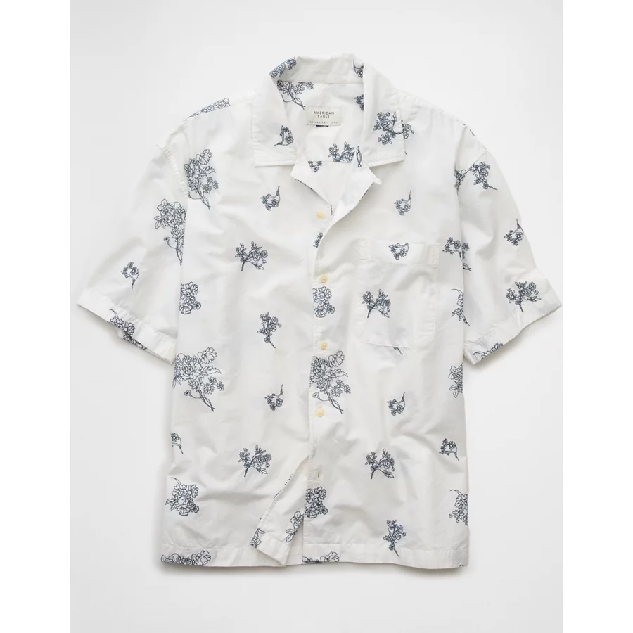 AE Poolside Linen-Blend Floral Button-Up Shirt – Cool White