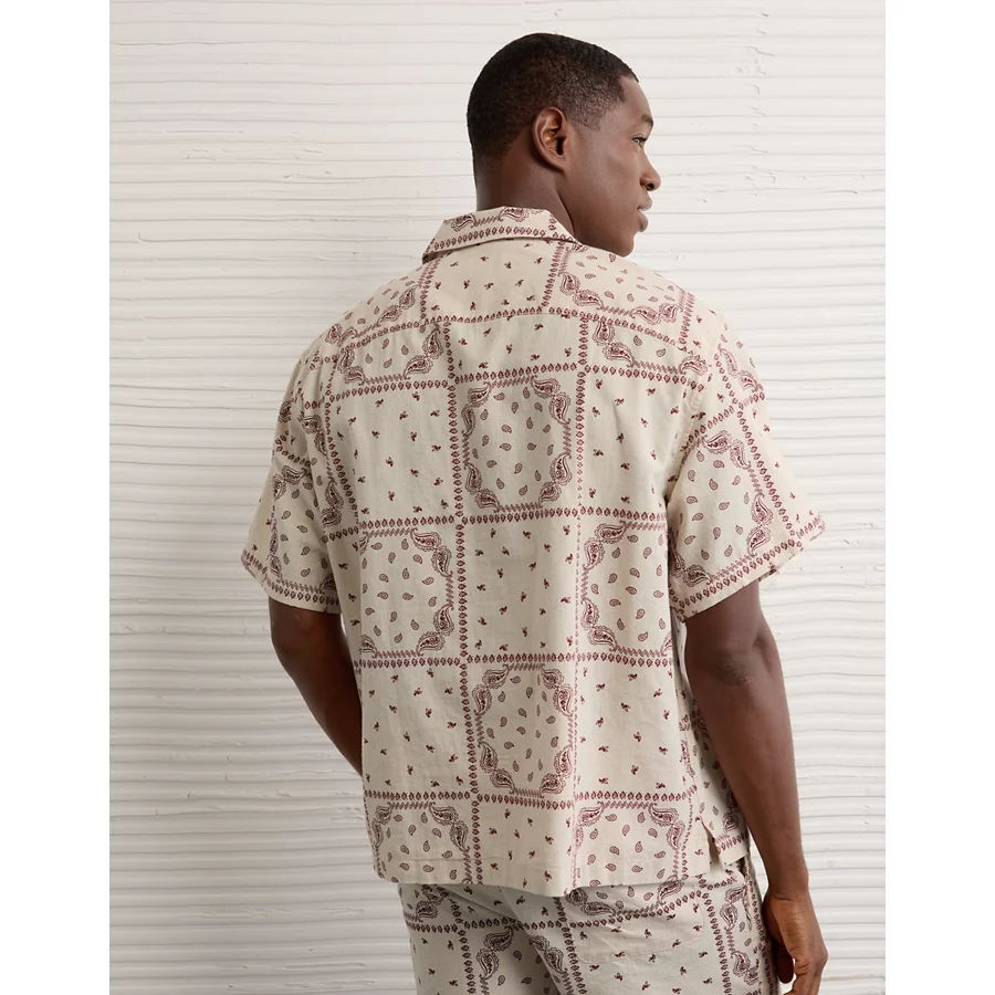 AE Poolside Linen-Blend Printed Button-Up Shirt – Cream