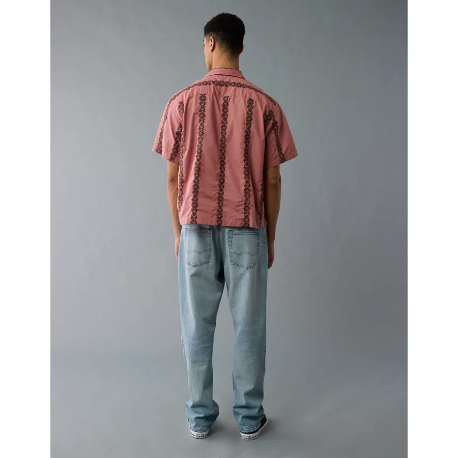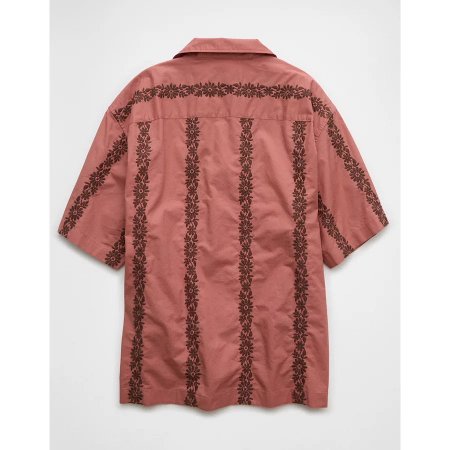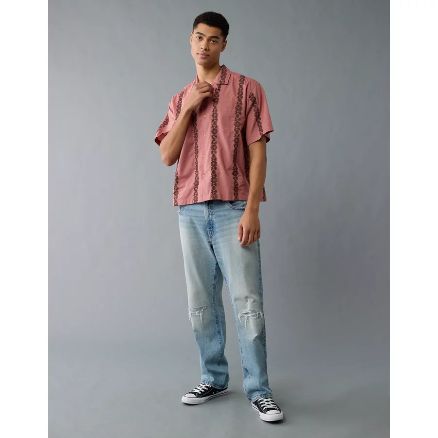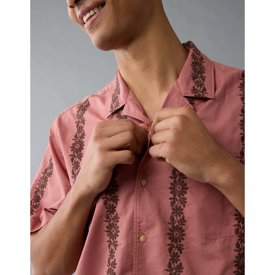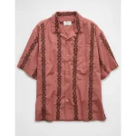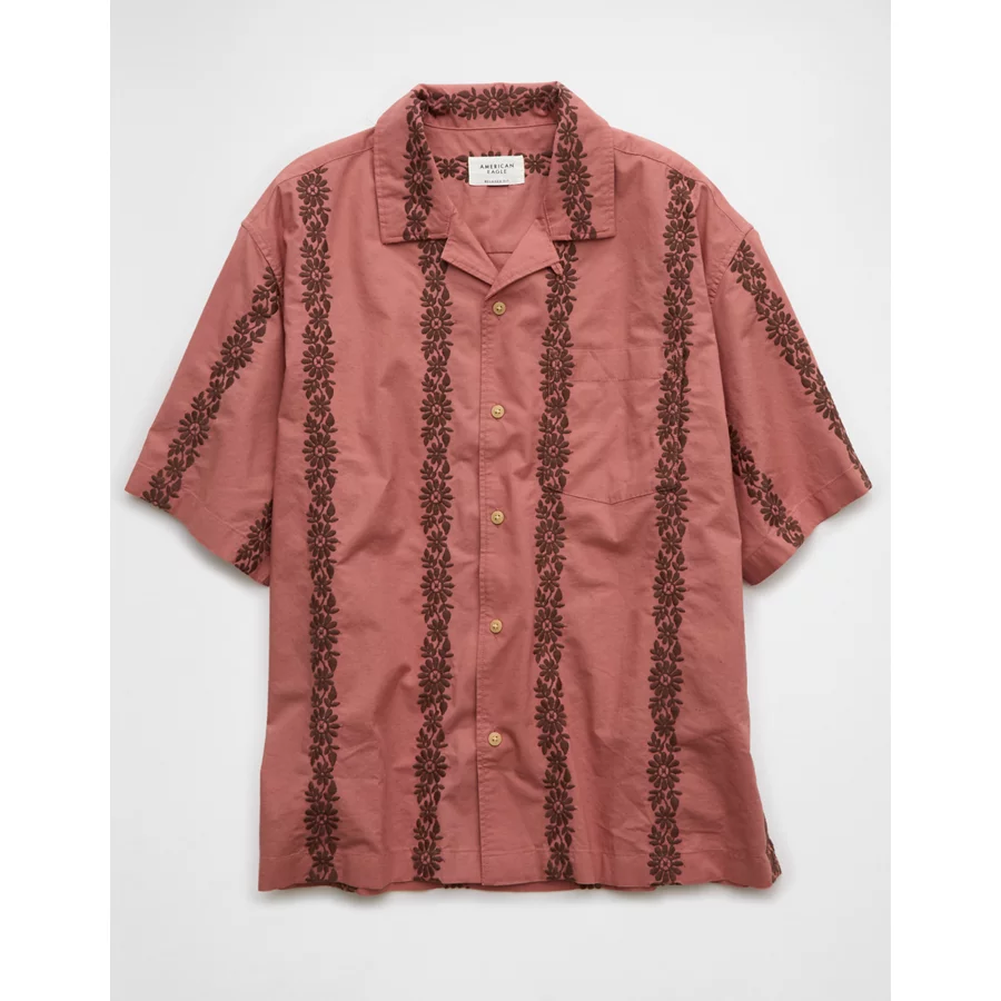 AE Poolside Linen-Blend Printed Button-Up Shirt – Mauve