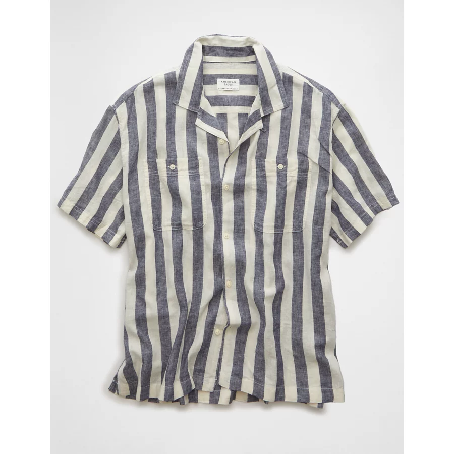 AE Poolside Linen-Blend Striped Button-Up Shirt – Black
