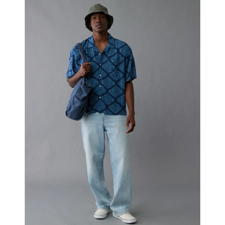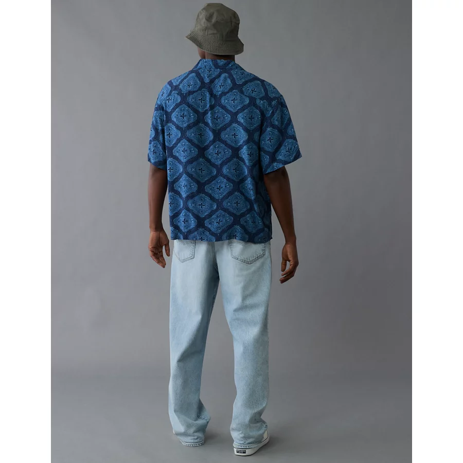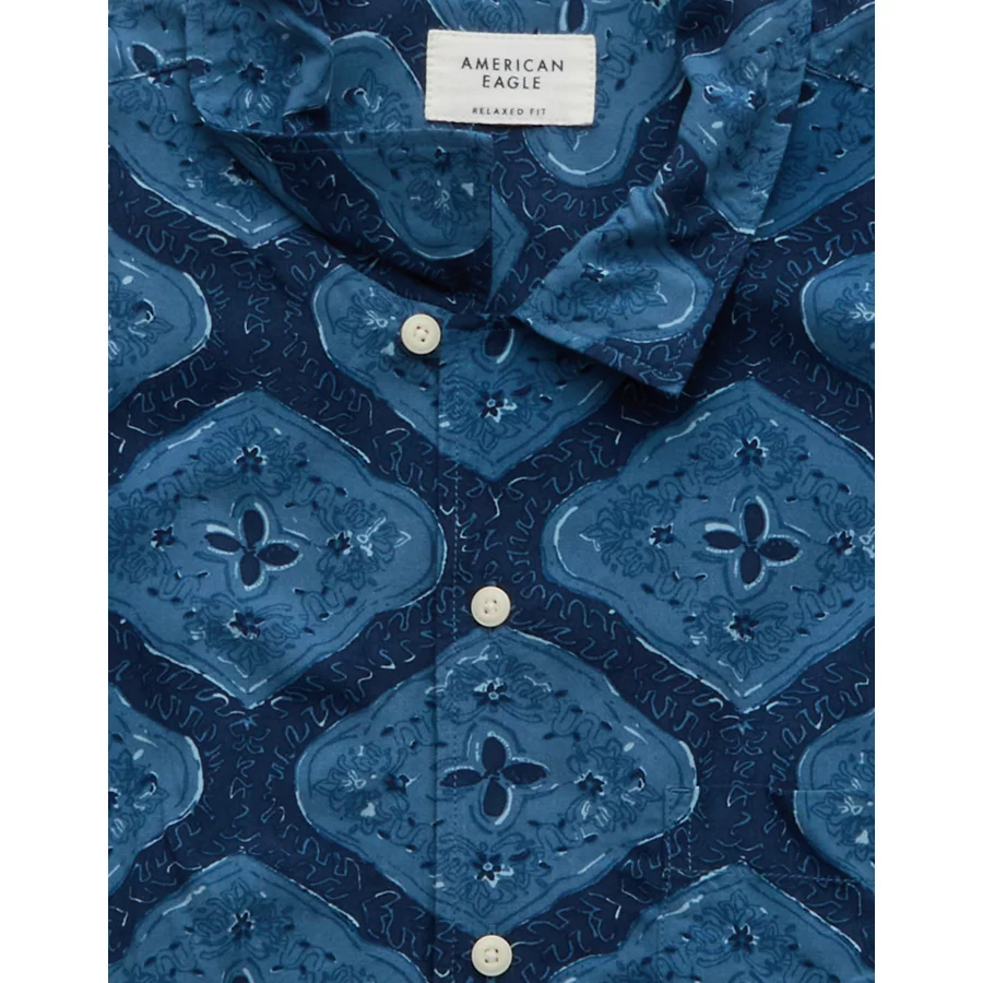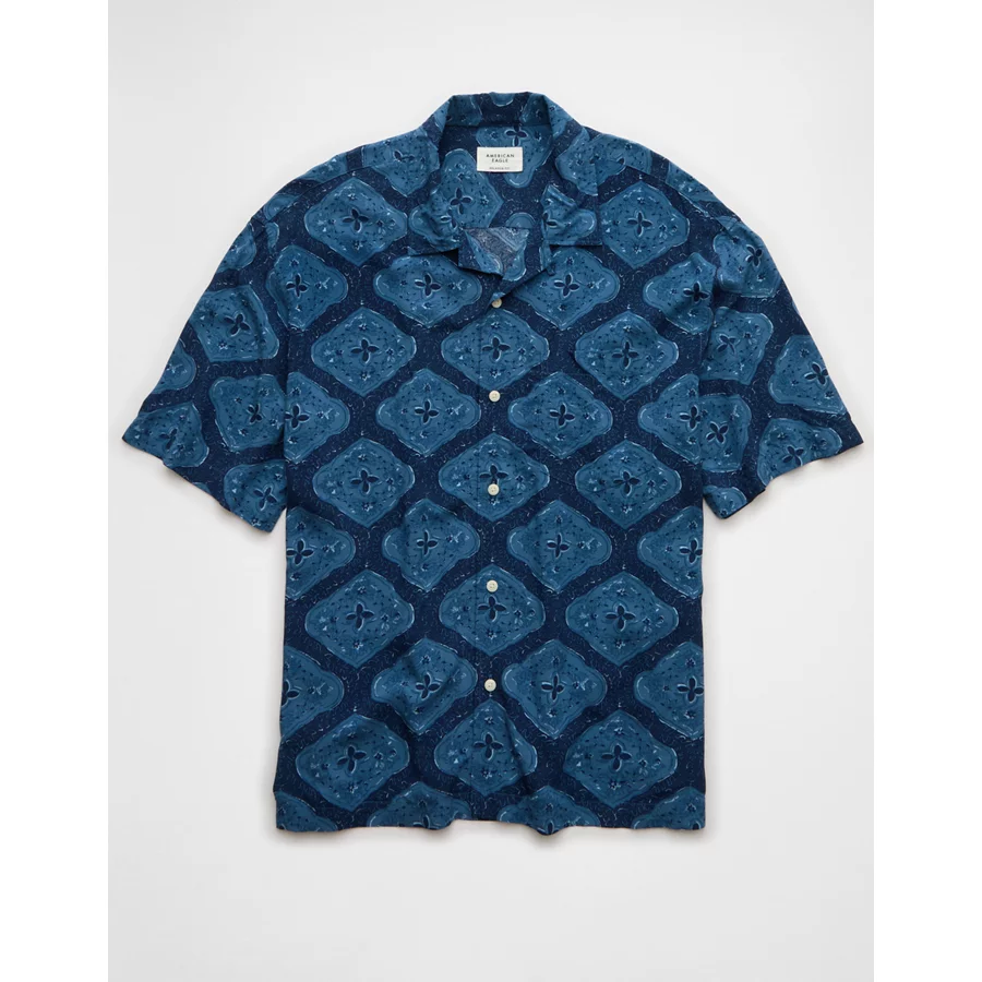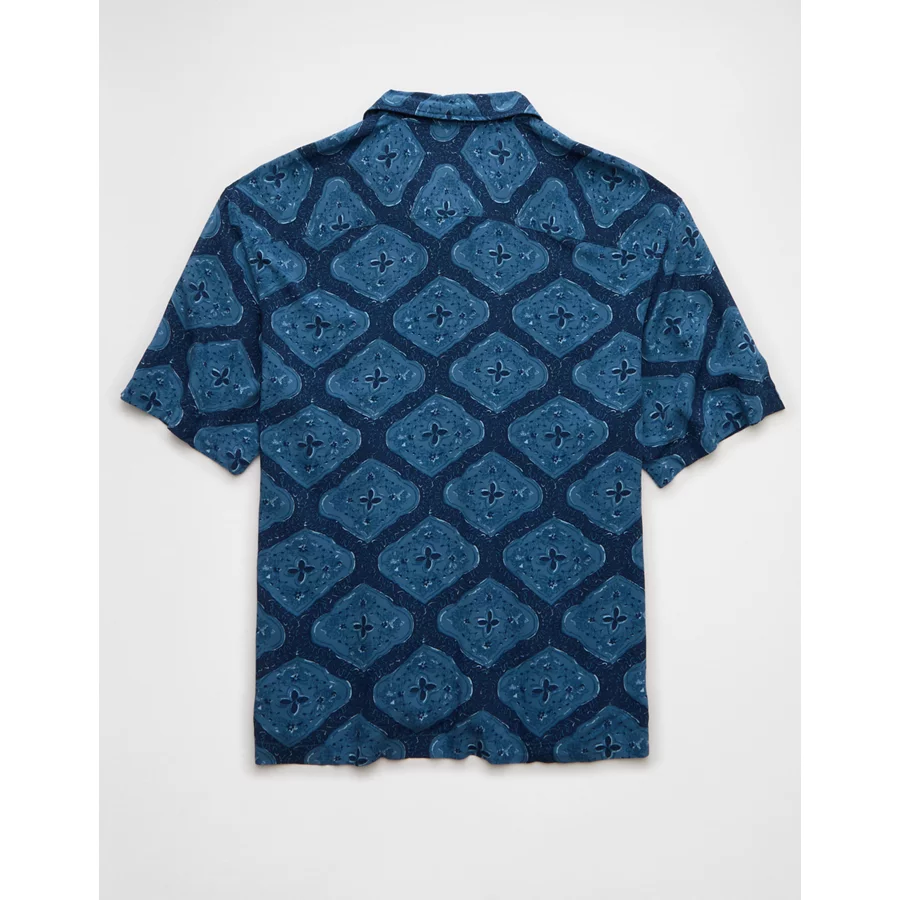AE Poolside Printed Button-Up Shirt – Navy