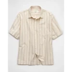 AE Poolside Striped Button-Up Shirt - Dune Khaki