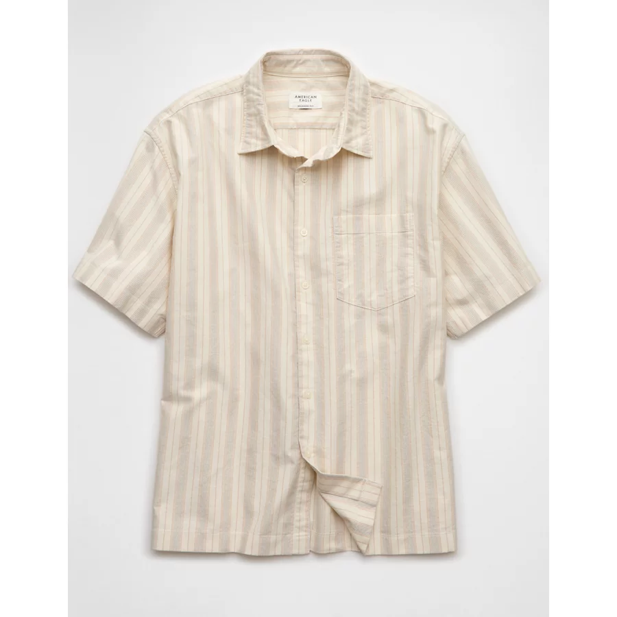 AE Poolside Striped Button-Up Shirt – Cream