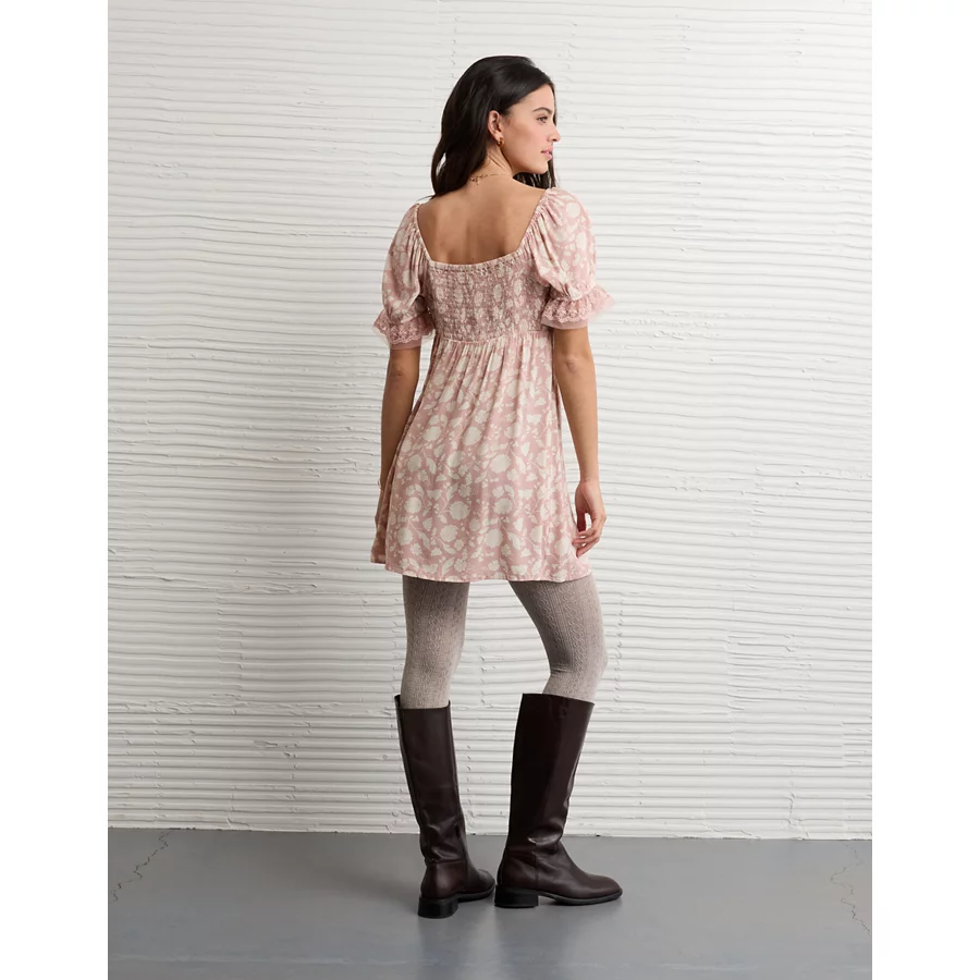 AE Printed Lace Tie Front Mini Dress – Dusty Pink