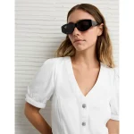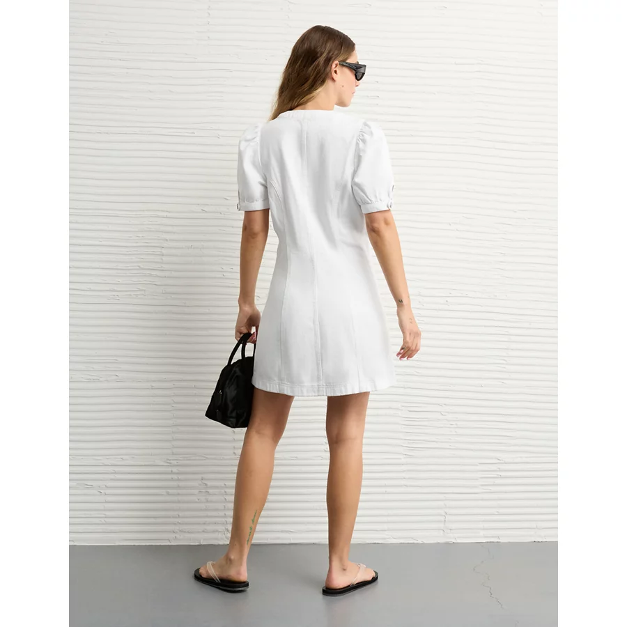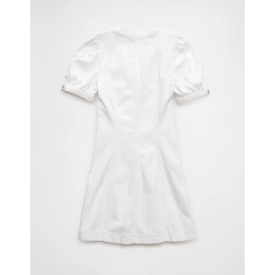 AE Puff Sleeve Denim Mini Shift Dress – White Washed