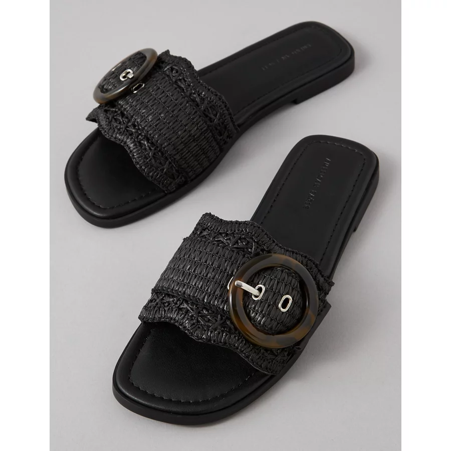 AE Raffia Buckle Slide Sandal – Black