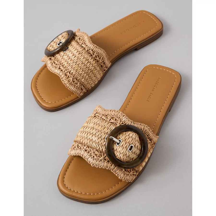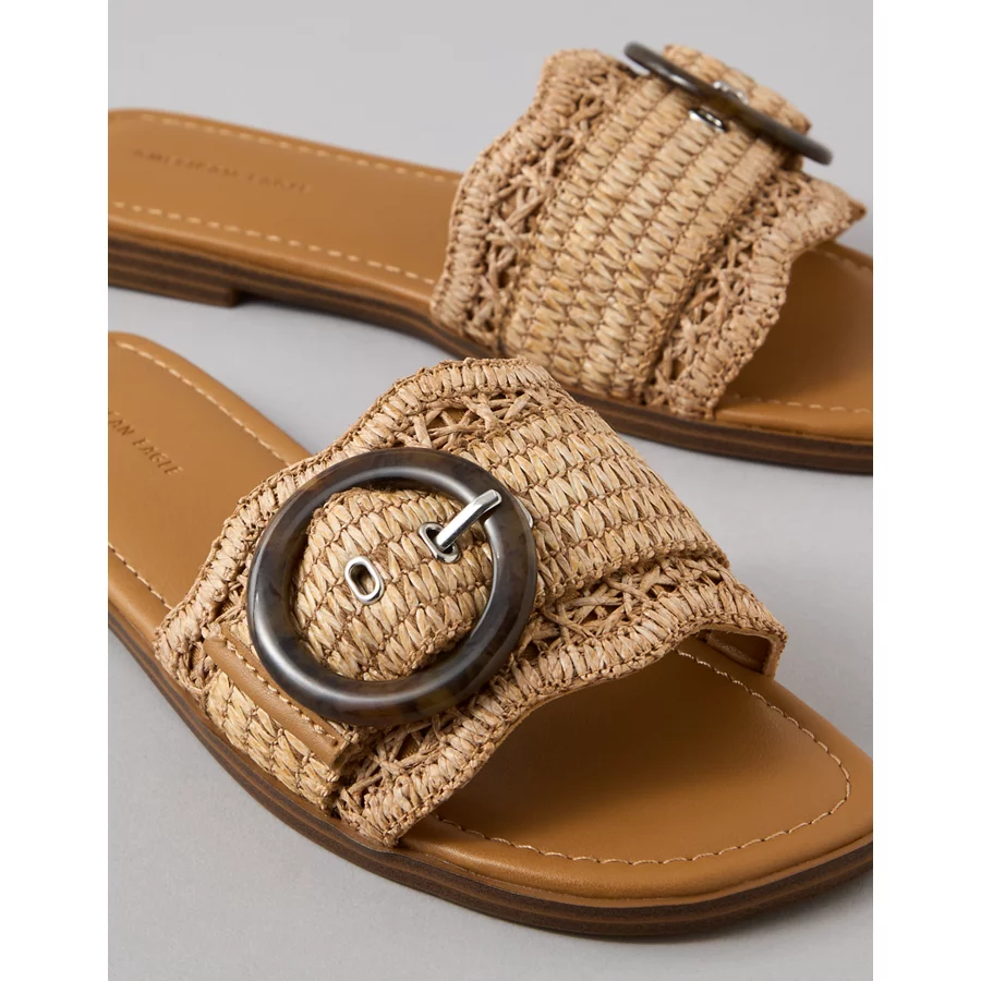 AE Raffia Buckle Slide Sandal – Dark Brown