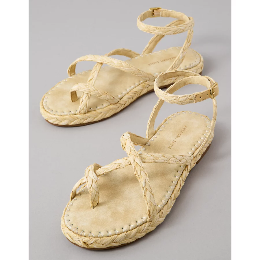 AE Raffia Espadrille Flatform Slide Sandal - Natural