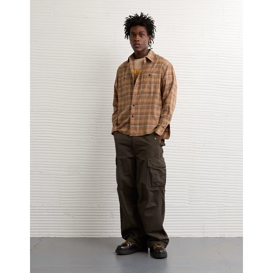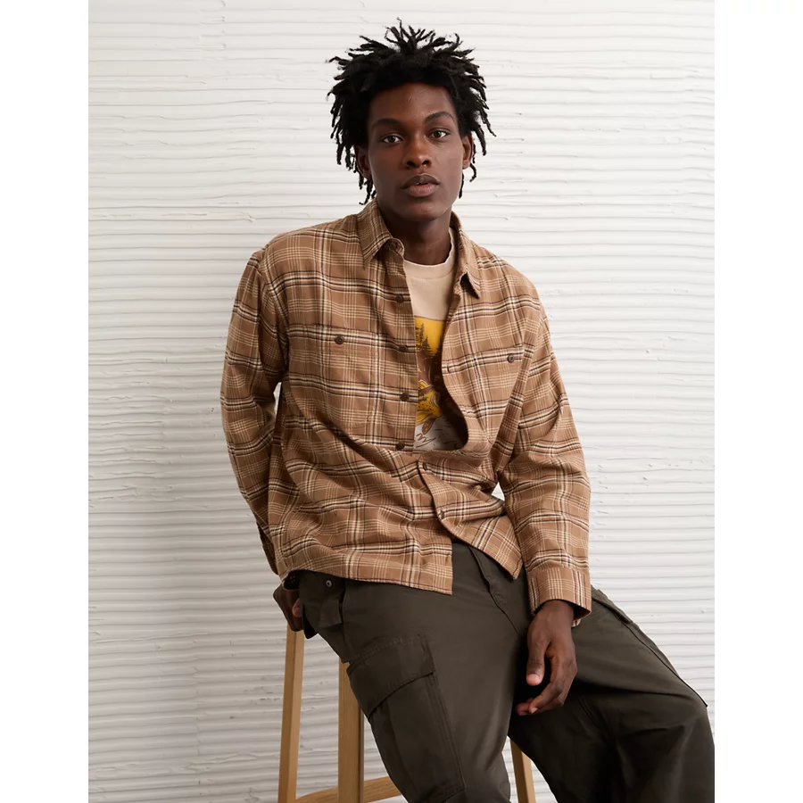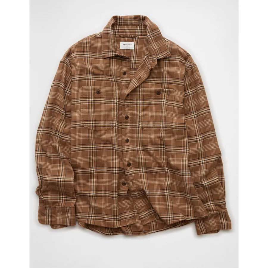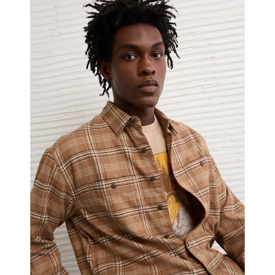 AE Relaxed Fit Everyday Flannel Shirt – Brown