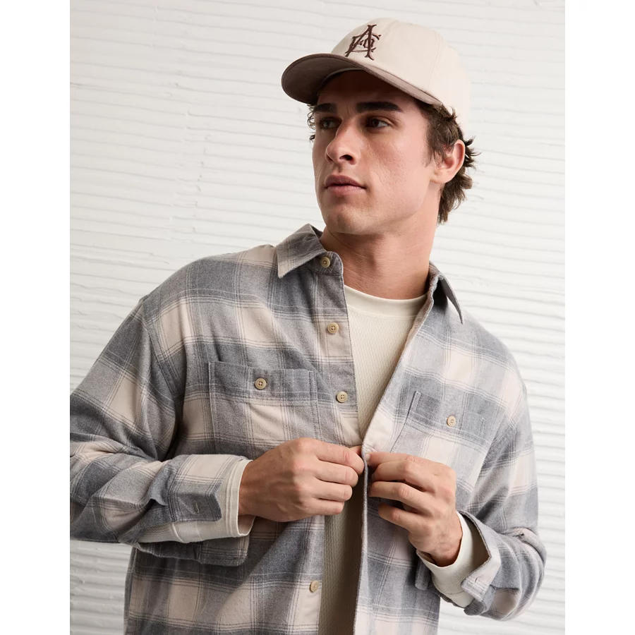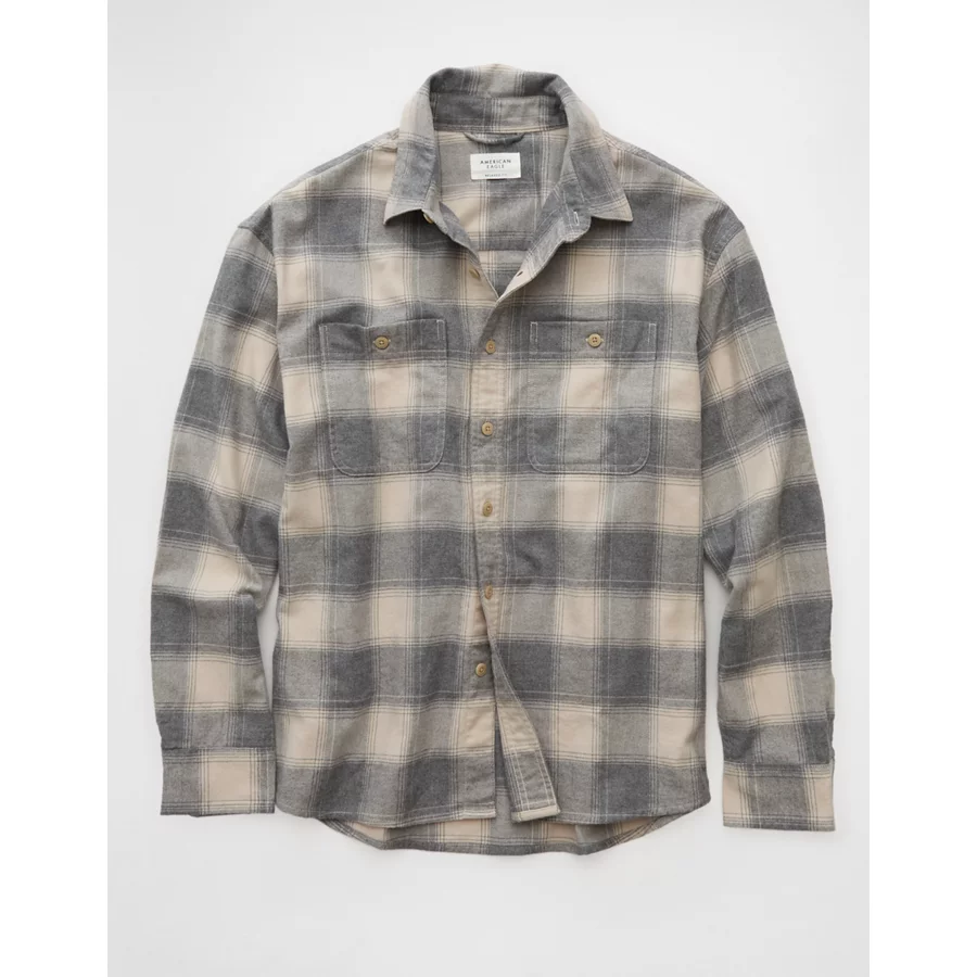 AE Relaxed Fit Everyday Flannel Shirt – Charcoal