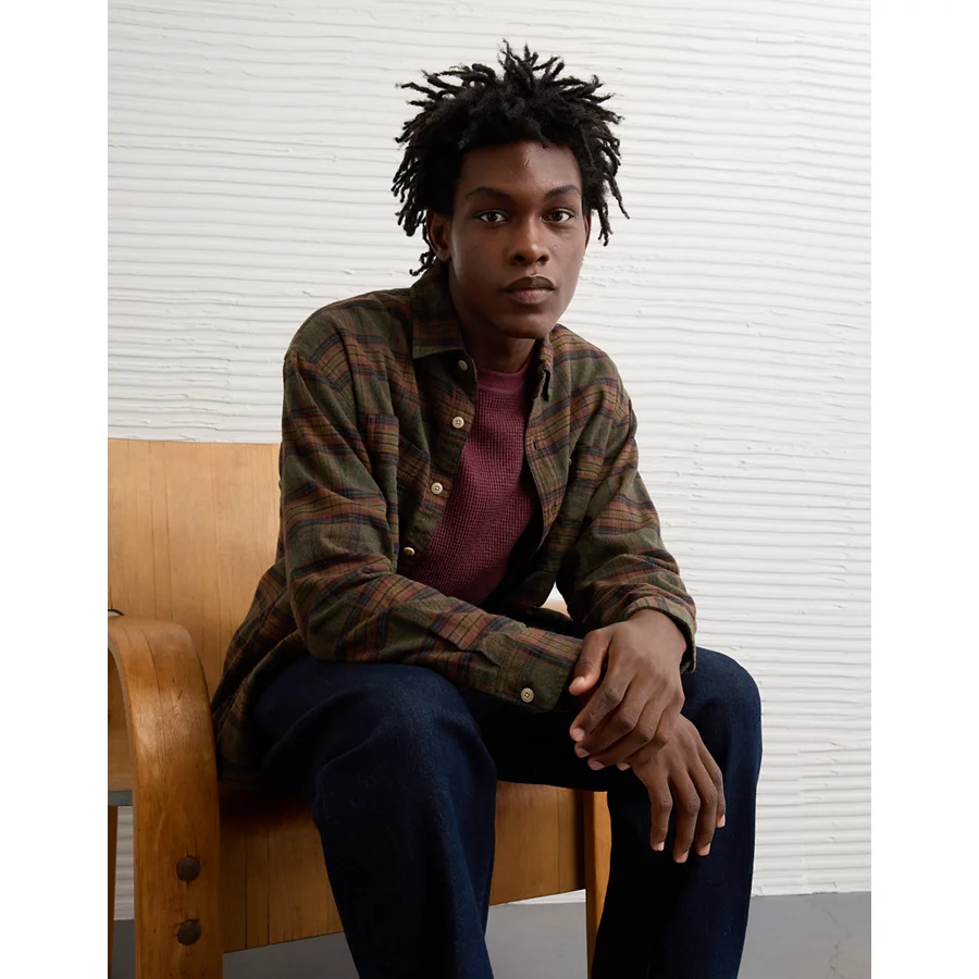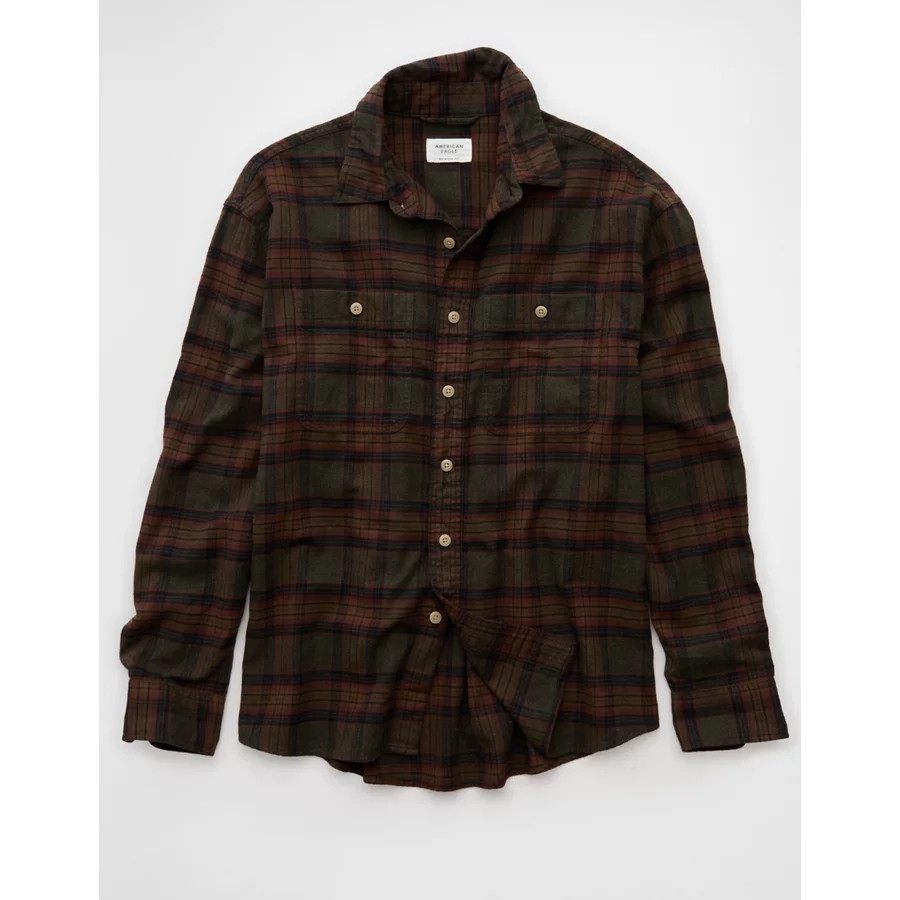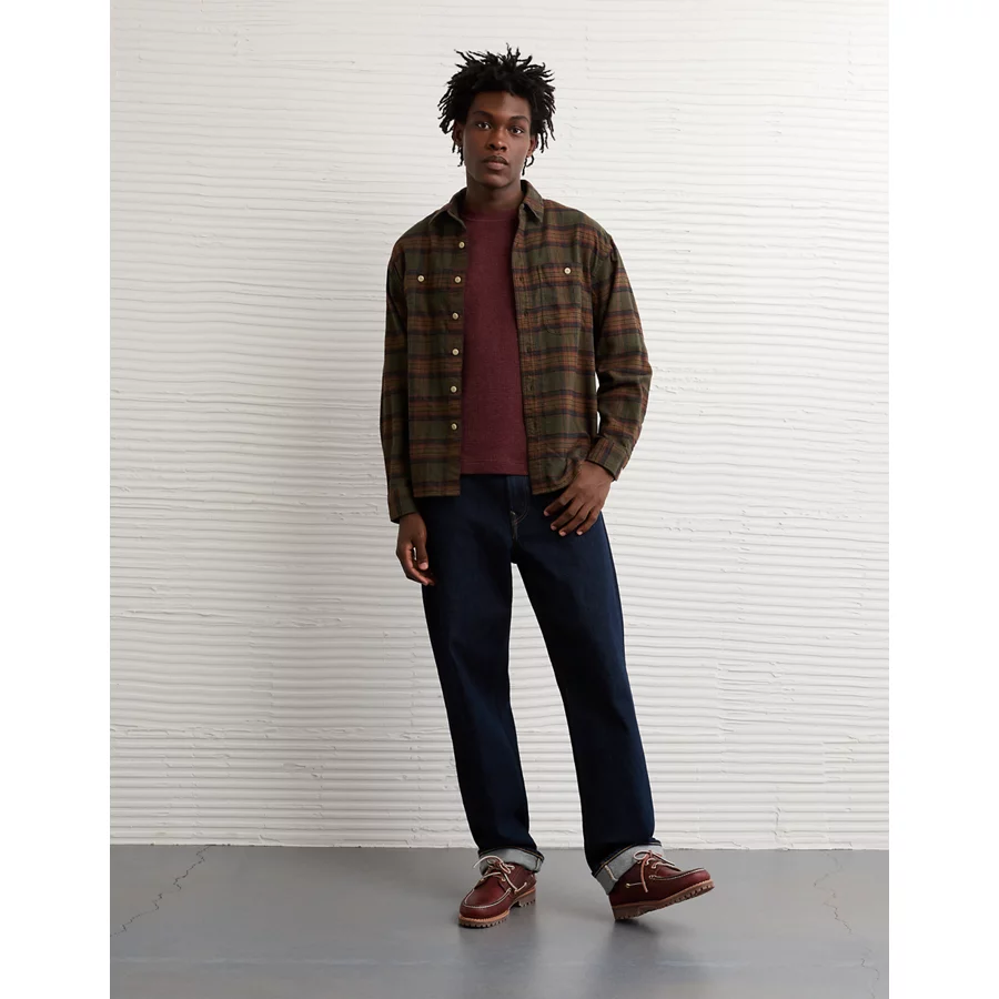 AE Relaxed Fit Everyday Flannel Shirt – Green