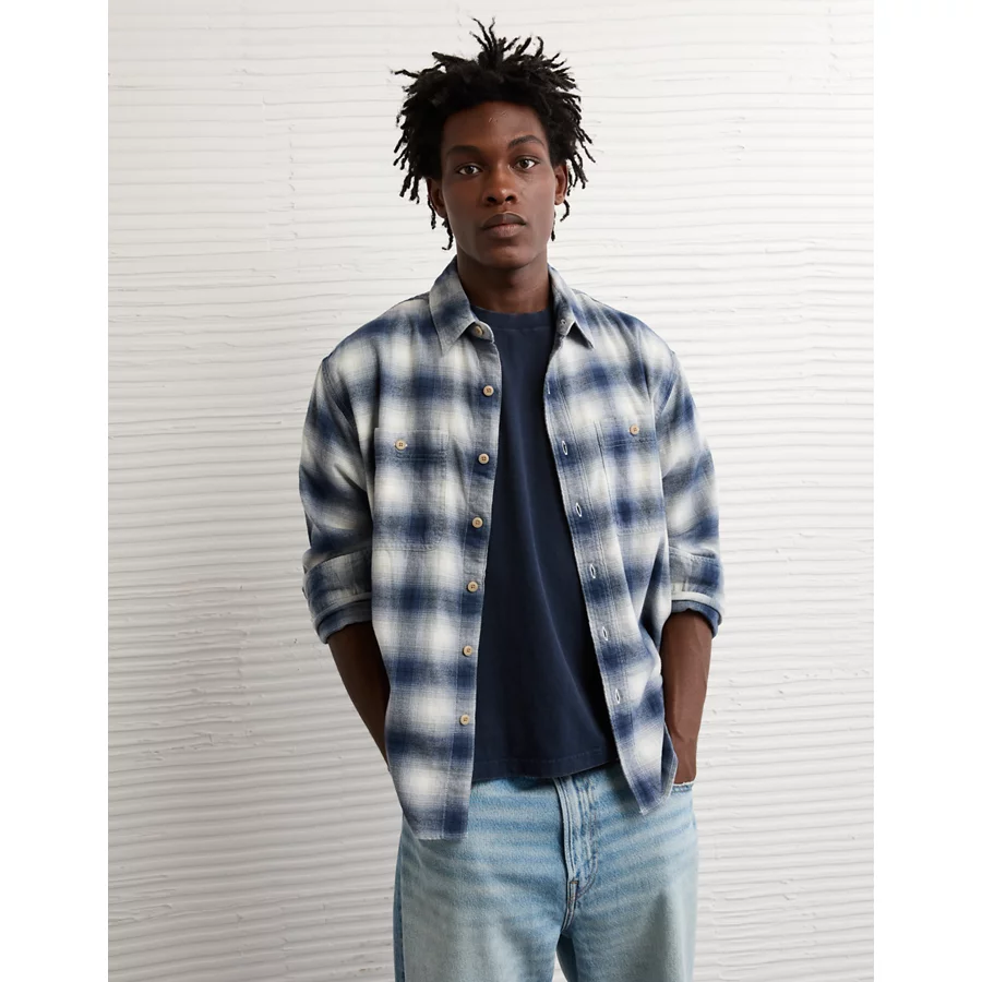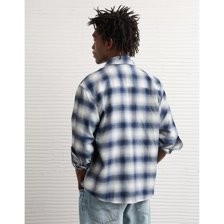 AE Relaxed Fit Everyday Flannel Shirt – Light Blue
