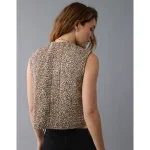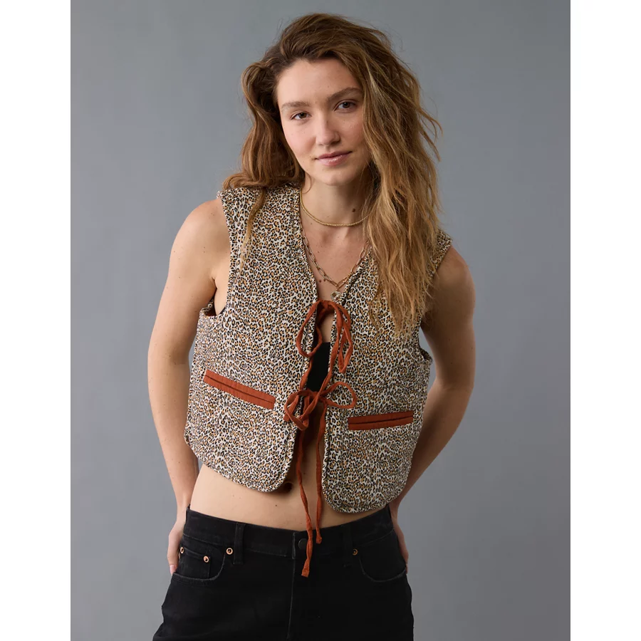 AE Reversible Leopard Tie Front Quilted Vest – Brown