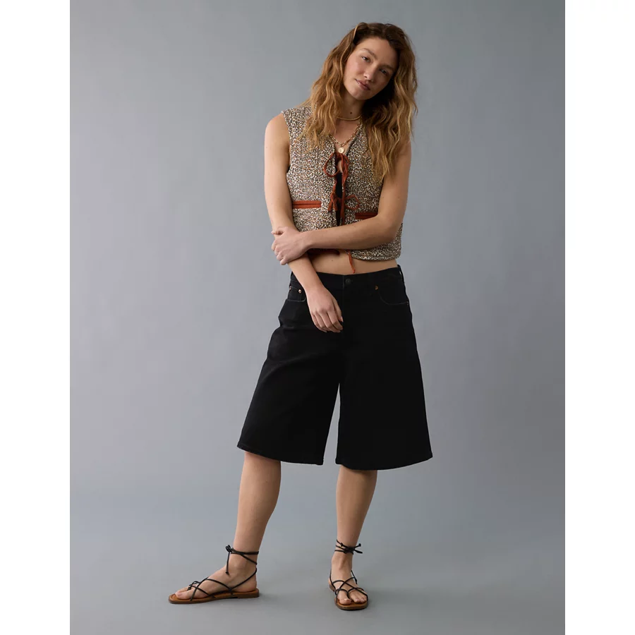 AE 8″ Dreamy Drape Stretch Low-Rise Baggy Jort – Medium Bright Indigo