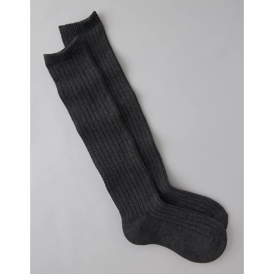 AE Rib Knit Knee-High Socks – Heather Gray