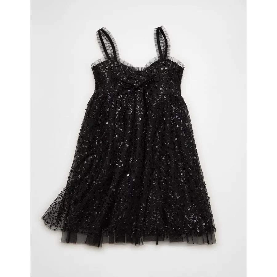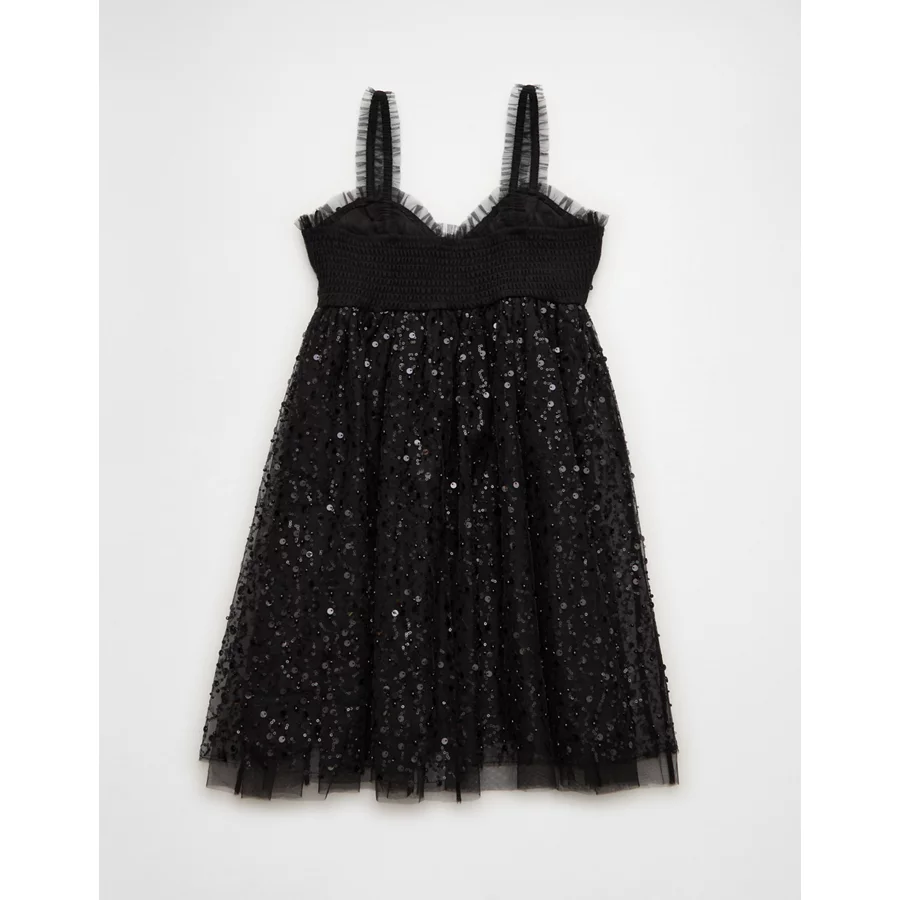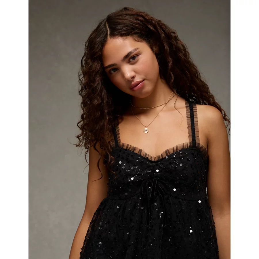 AE Ruched Peplum Tank Top With Removable Straps - True Black