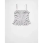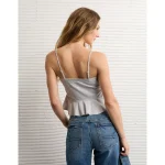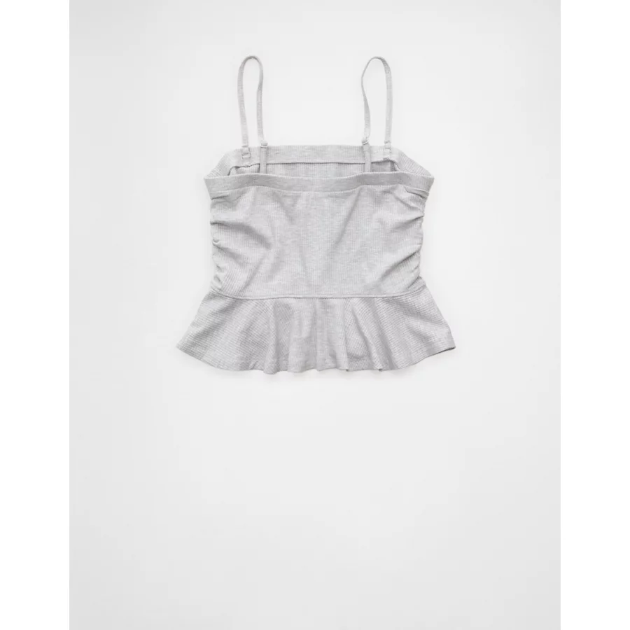 AE Ruched Peplum Tank Top With Removable Straps – Heather Gray