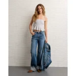 AE Ruched Peplum Tank Top With Removable Straps - Retro Indigo Stripe