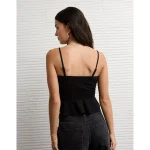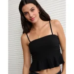 AE Ruched Peplum Tank Top With Removable Straps – True Black