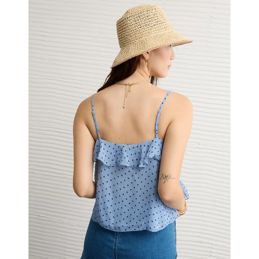 Chiffon fabricV-neckAsymmetrical ruffle details throughoutLeg slit 100% CottonMachine washImported Slip dress silhouetteMaxi lengthSleeveless