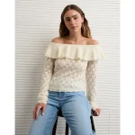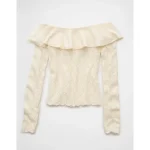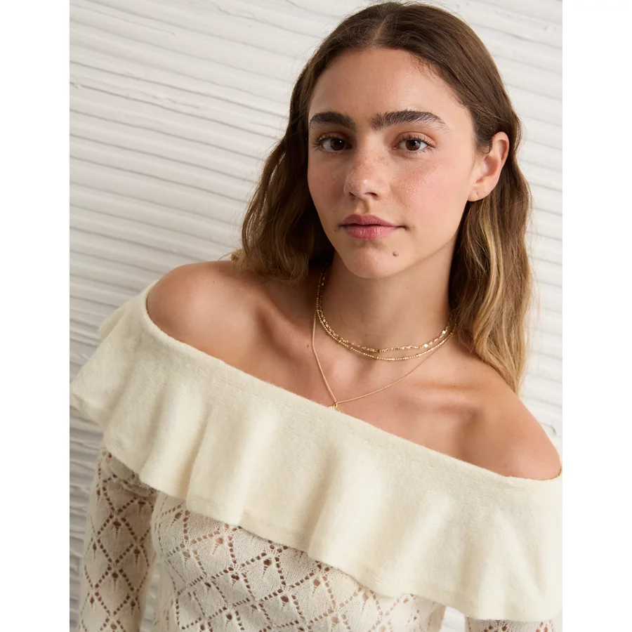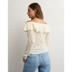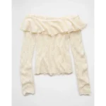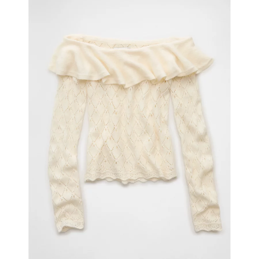 AE Ruffle Off-The-Shoulder Sweater – Cream