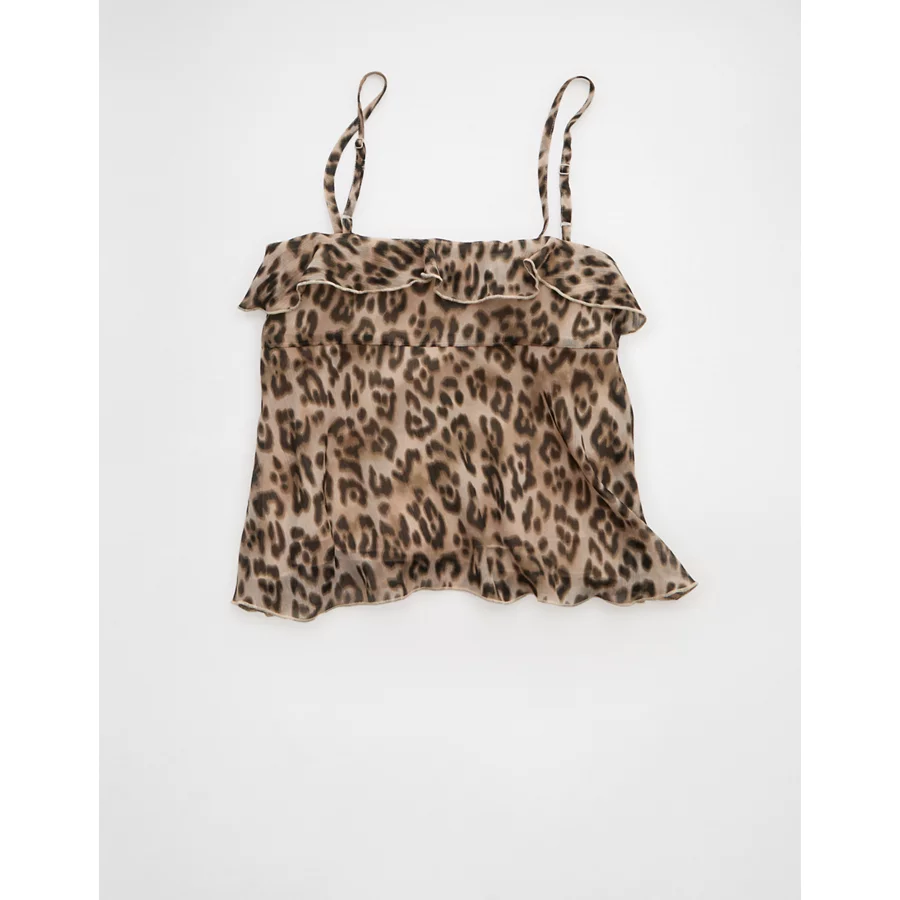 AE Ruffle Tie-Front Cami Top – Brown