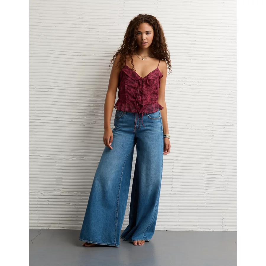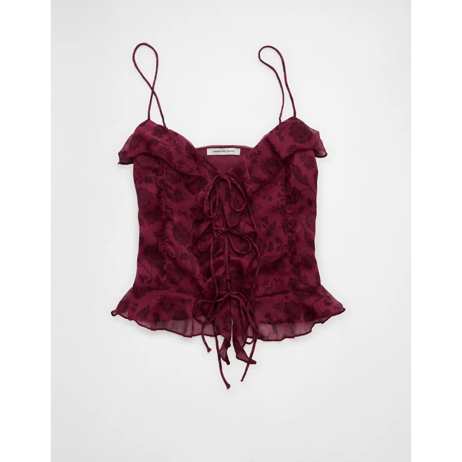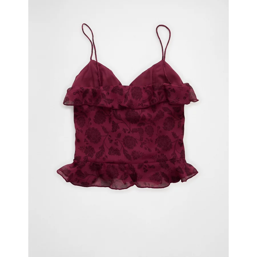 AE Ruffled Chiffon Cami Top – Burgundy