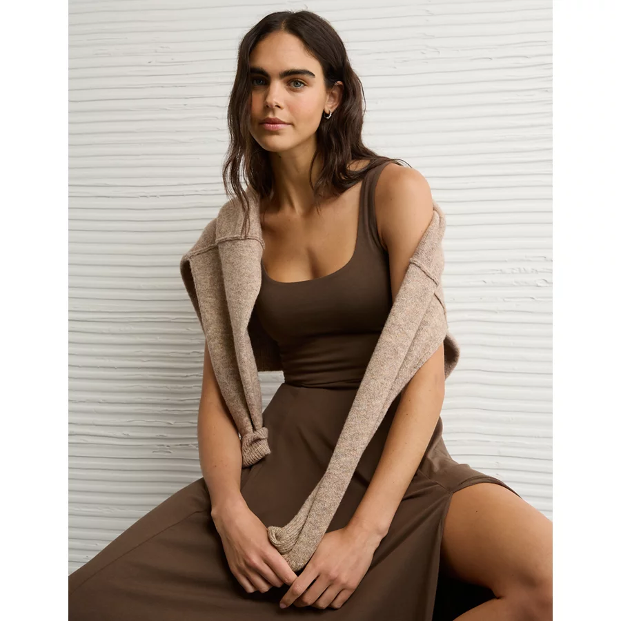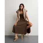 AE Scoop Neck Midi Dress – Brown