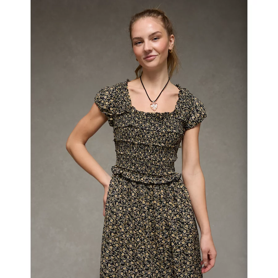 AE Scoop Neck Smocked Midi Dress – Multi