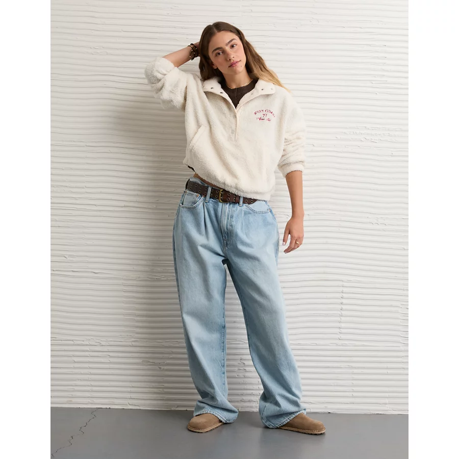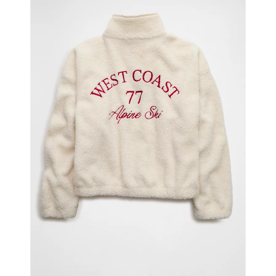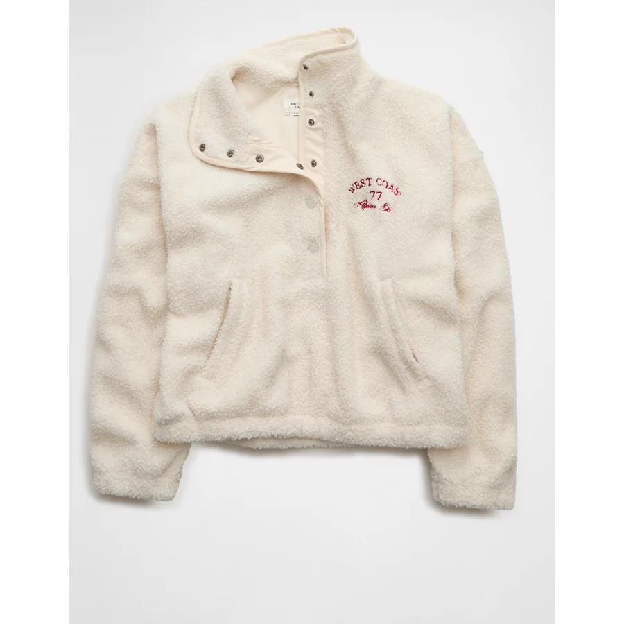AE Sherpa Fleece Graphic Henley Sweatshirt – Cream