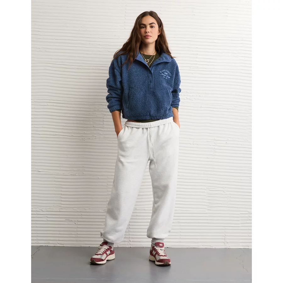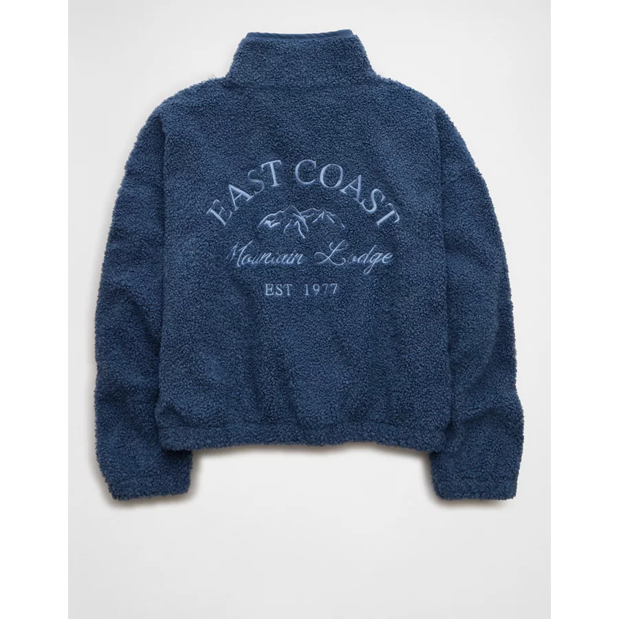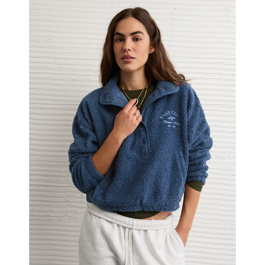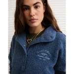 AE Sherpa Fleece Graphic Henley Sweatshirt – Navy