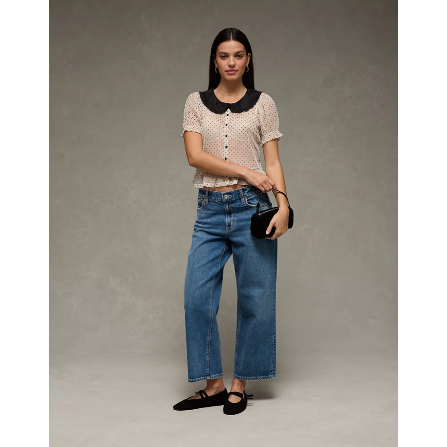 AE Short Sleeve Sheer Blouse – Cream