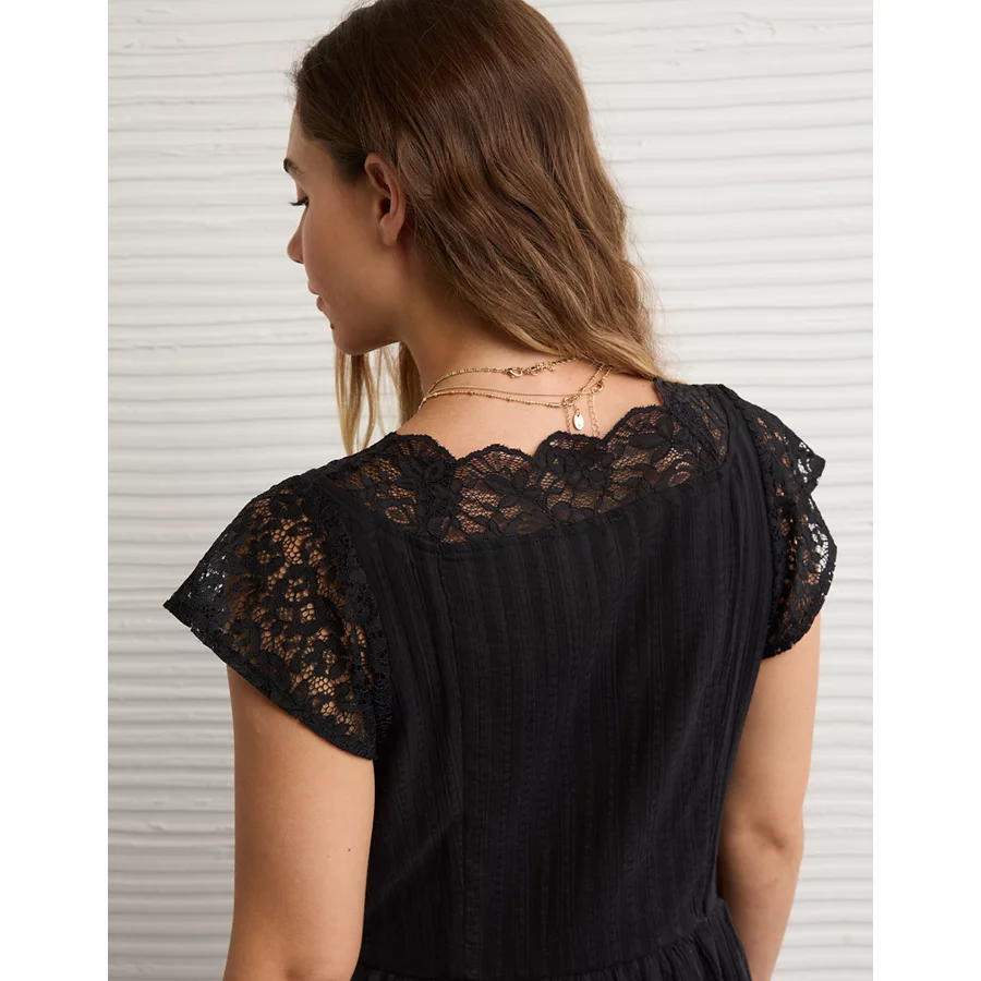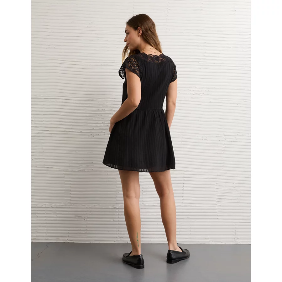 AE Short Sleeve V-Neck Mini Dress - Cream