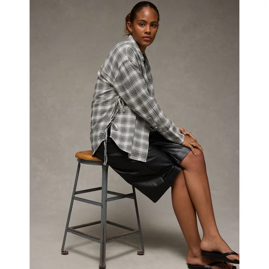 AE Side-Tie Button-Up Shirt – Black