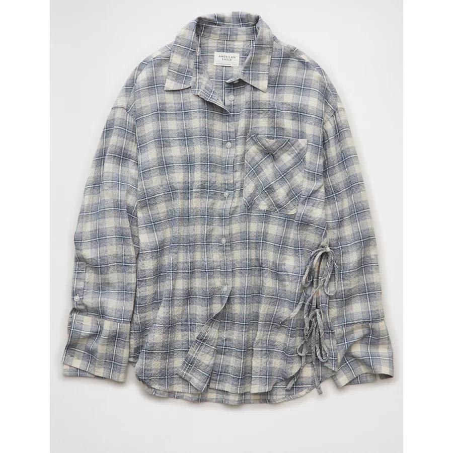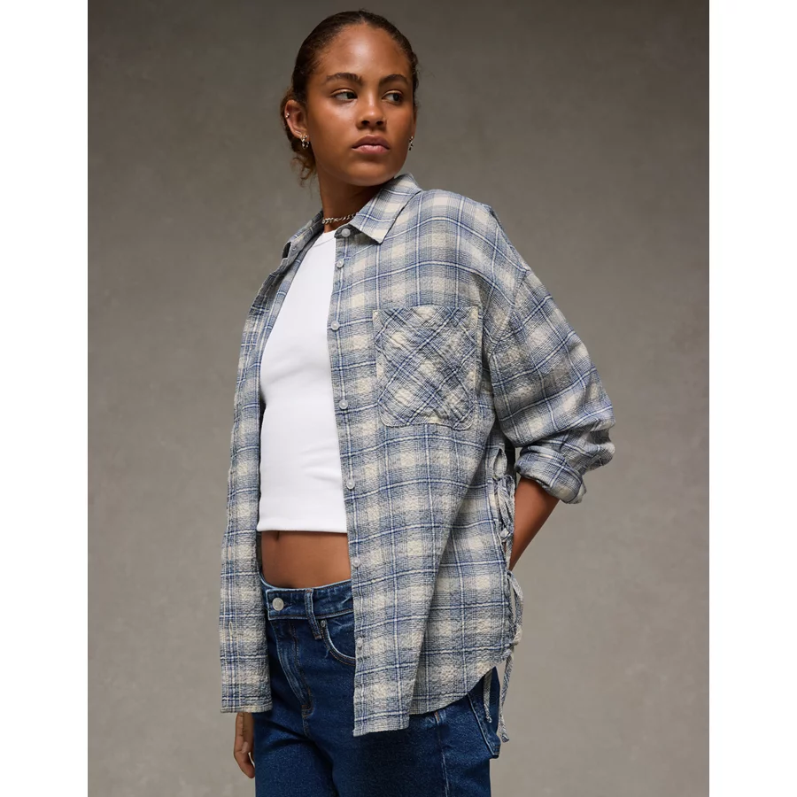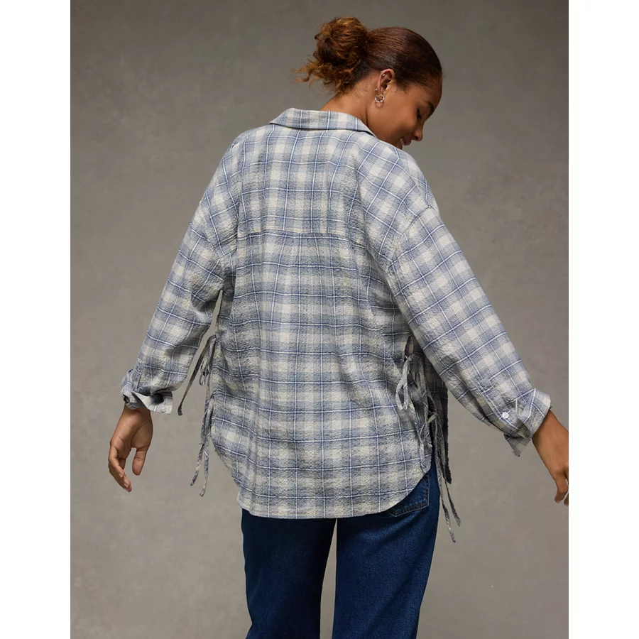 AE Side-Tie Button-Up Shirt – Blue