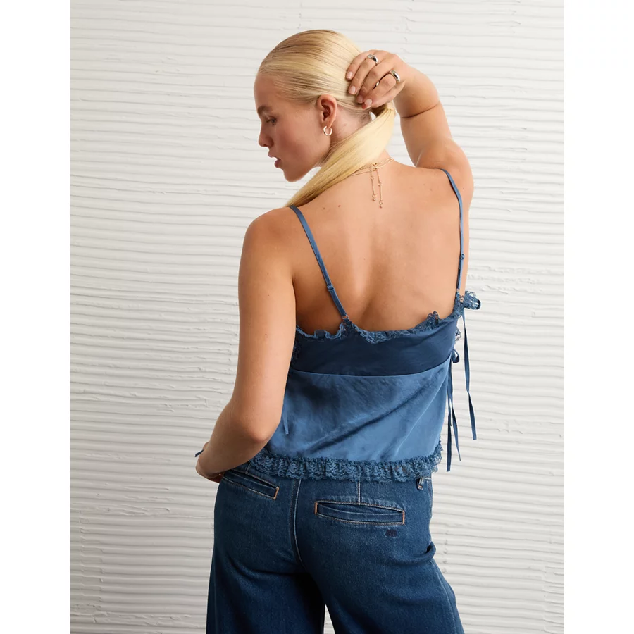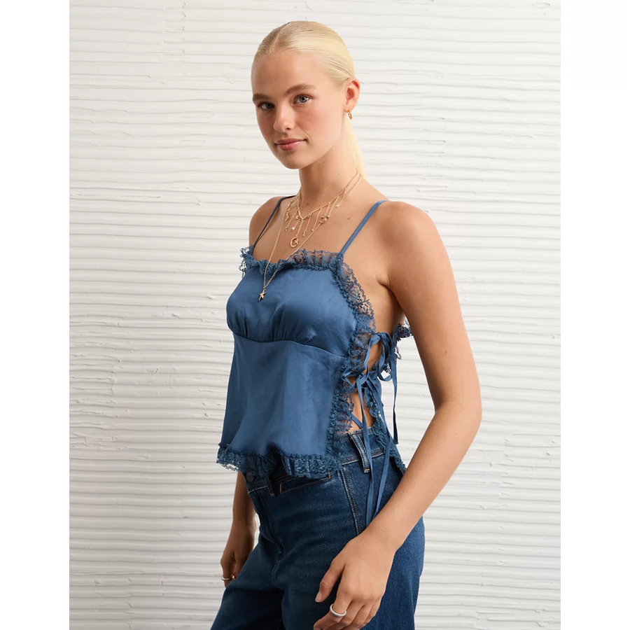 AE Side-Tie Lace Tank Top – Navy