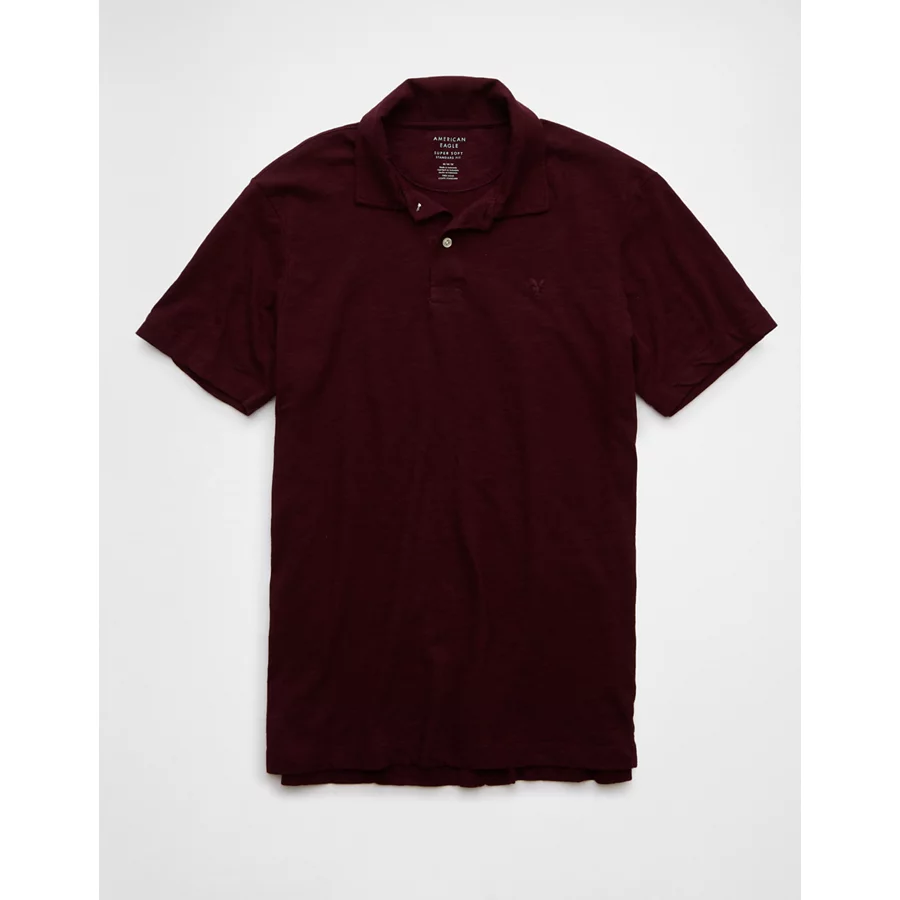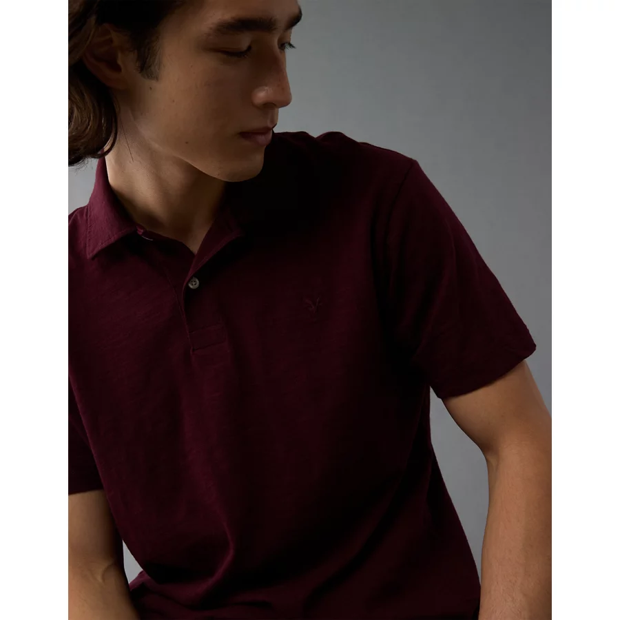 Super soft jersey with added stretchPolo collar with button placketAE 24/7 logoThis is Real Good: Made with the planet in