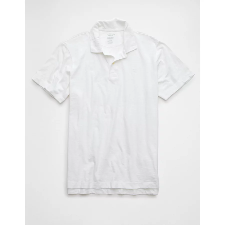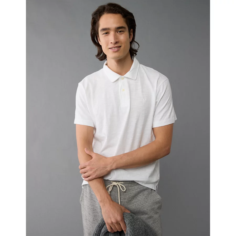 Super soft jersey with added stretchPolo collar with button placketAE 24/7 logoThis is Real Good: Made with the planet in