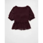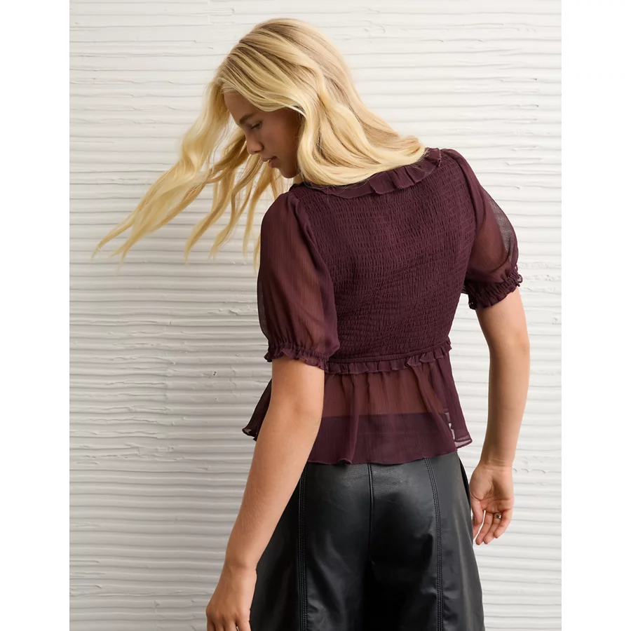 AE Smocked Babydoll Blouse - Purple