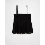 AE Smocked Babydoll Bow Tank Top - Light Blue