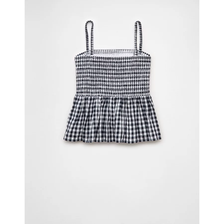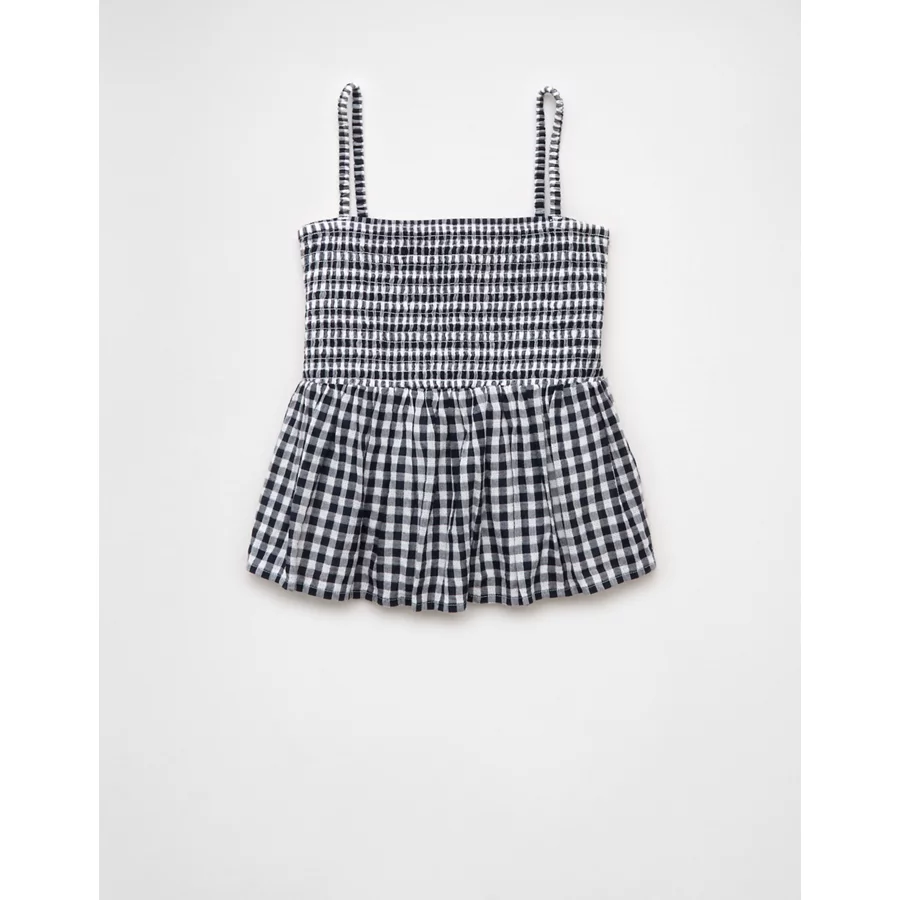 AE Smocked Gingham Babydoll Cami – Navy