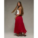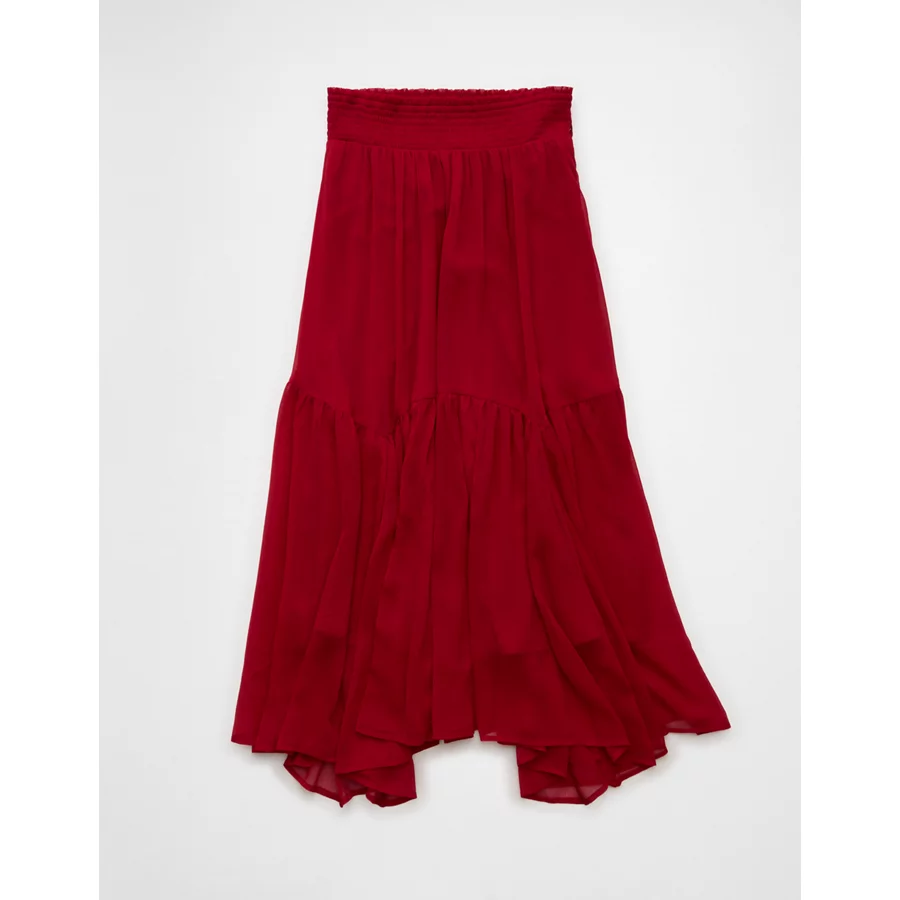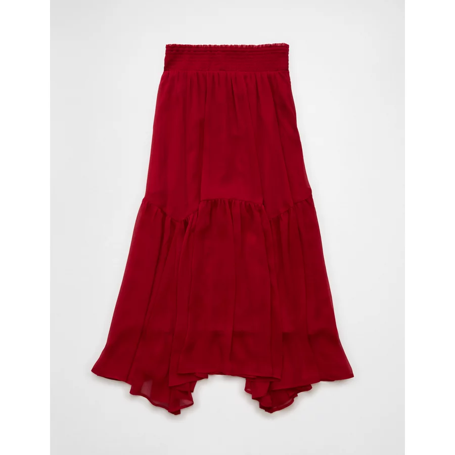 AE Smocked Handkerchief Hem Maxi Skirt – Berry