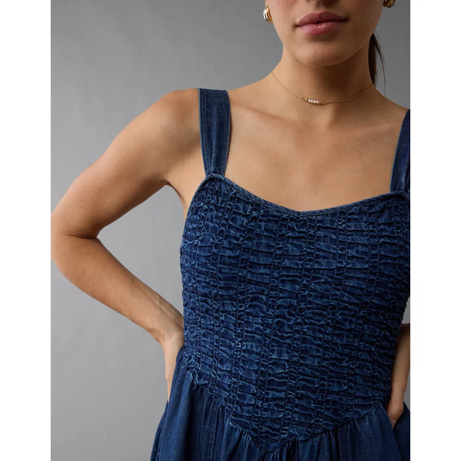 AE Asymmetrical Ruffle Maxi Slip Dress – Blue