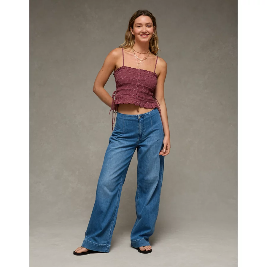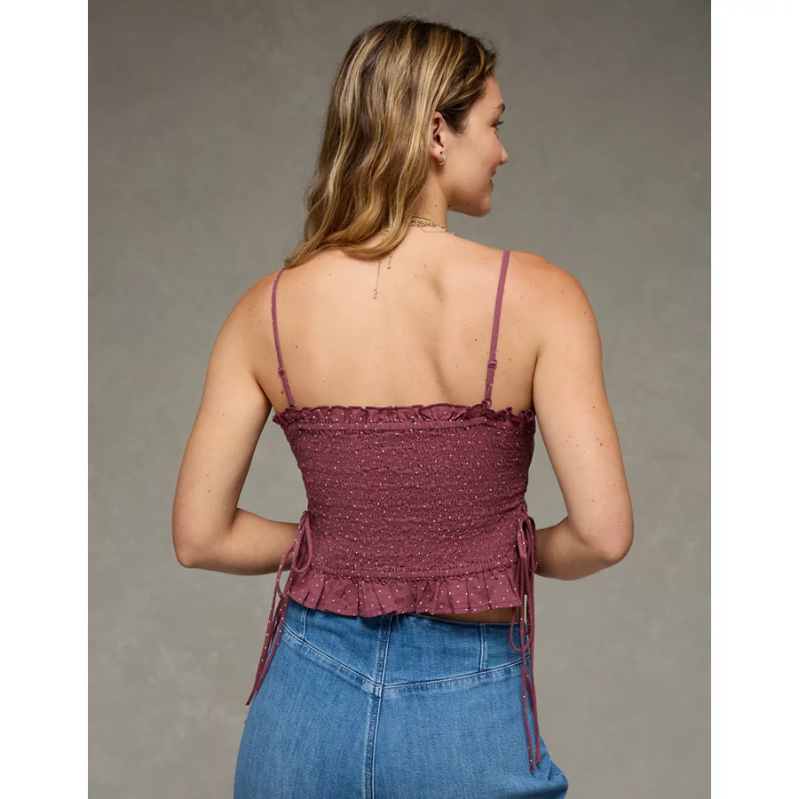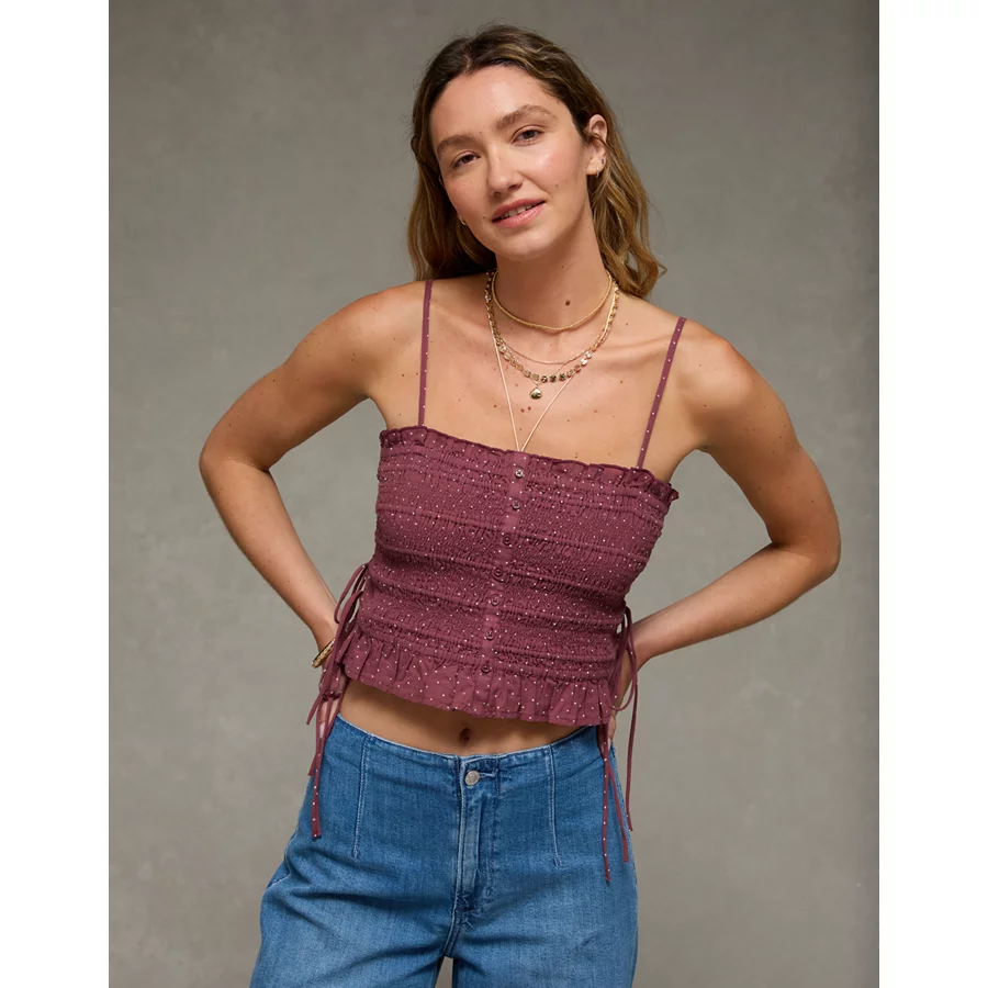 AE Smocked Tie Side Button-Up Tank Top – Burgundy